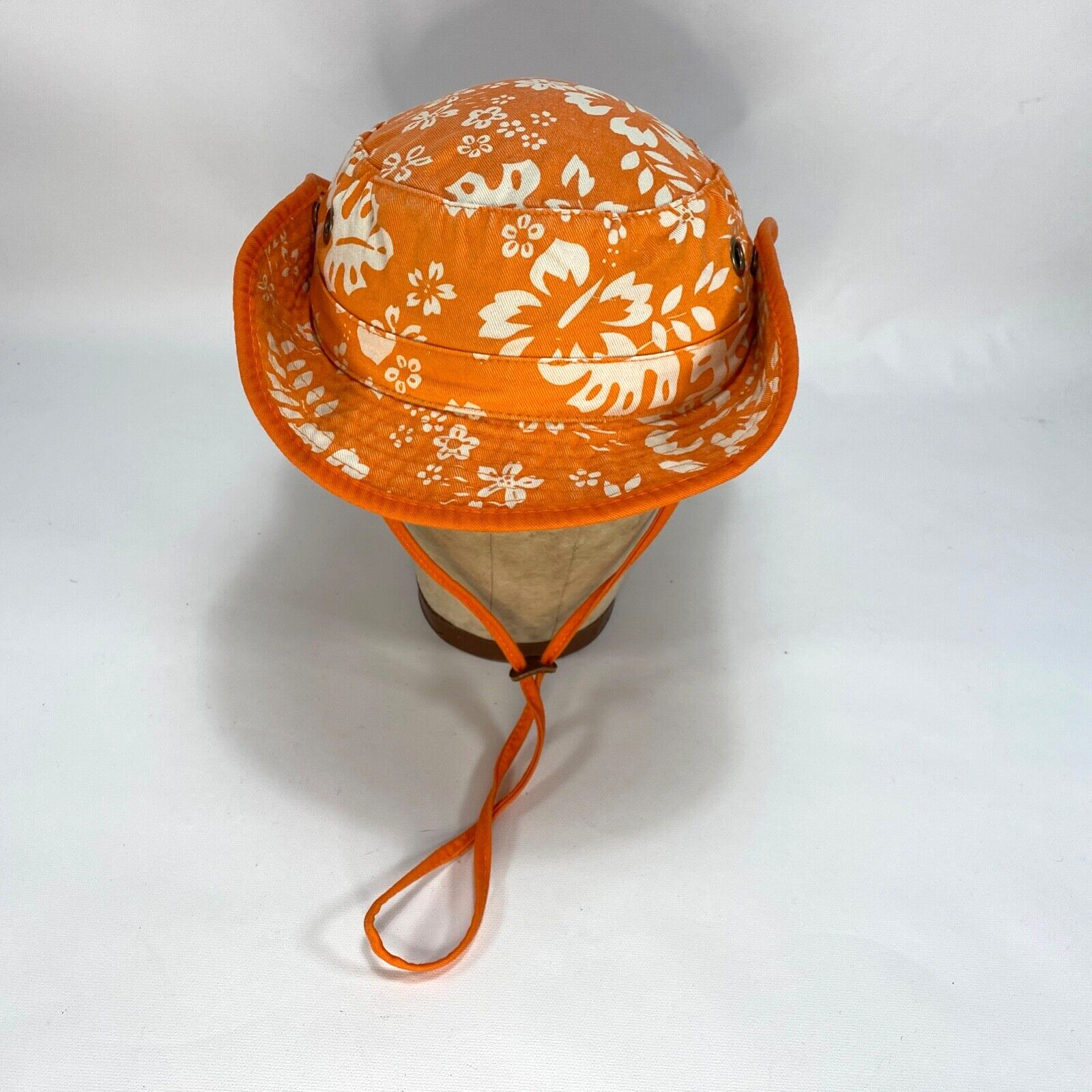 Dorfman Pacific Kindercaps Bucket Hat Cap 4-6X Orange White Leaves Snap Sides