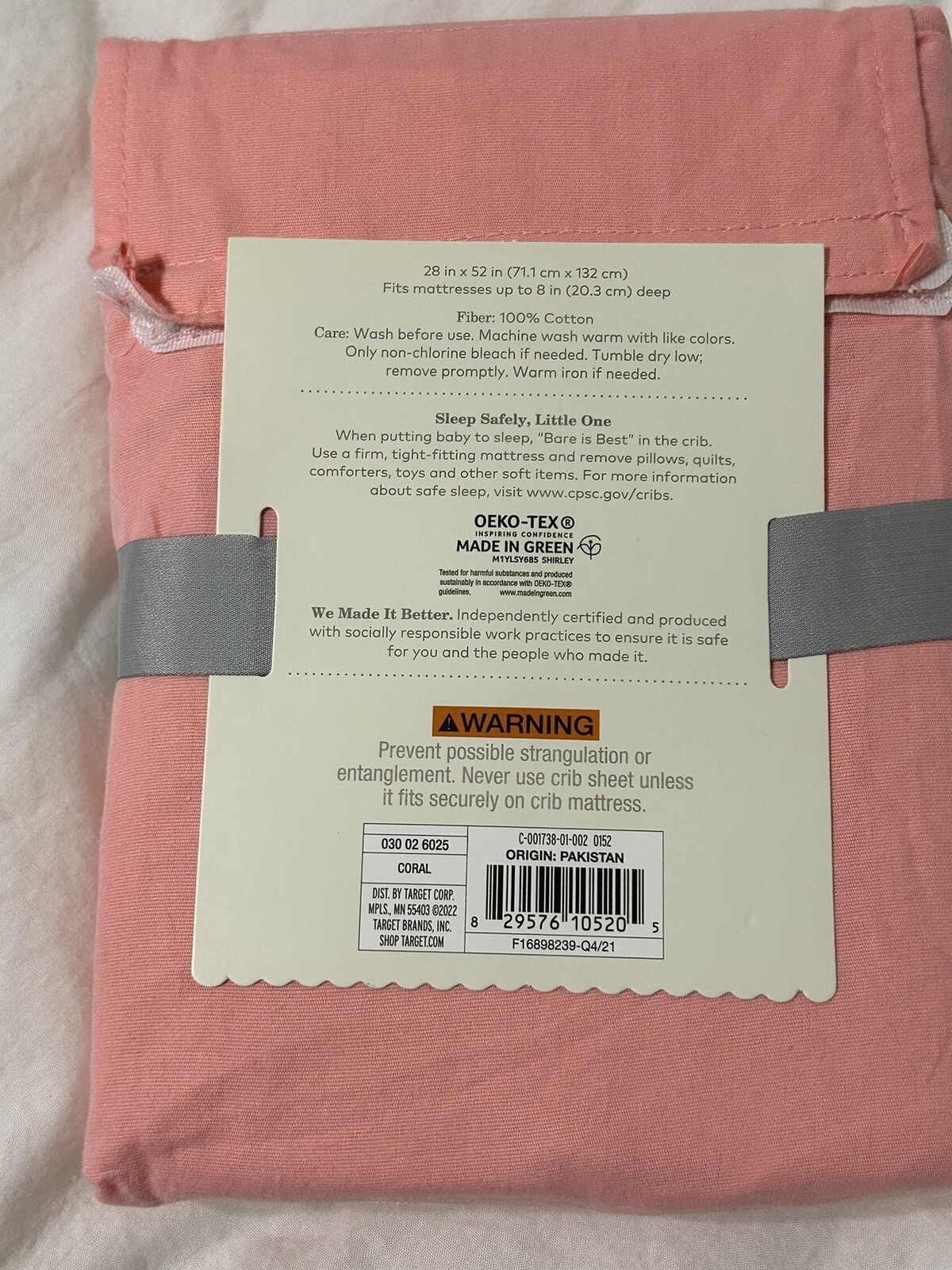 как выглядит Cloud Island Fitted Crib Sheet girls nursery coral new 10520 фото