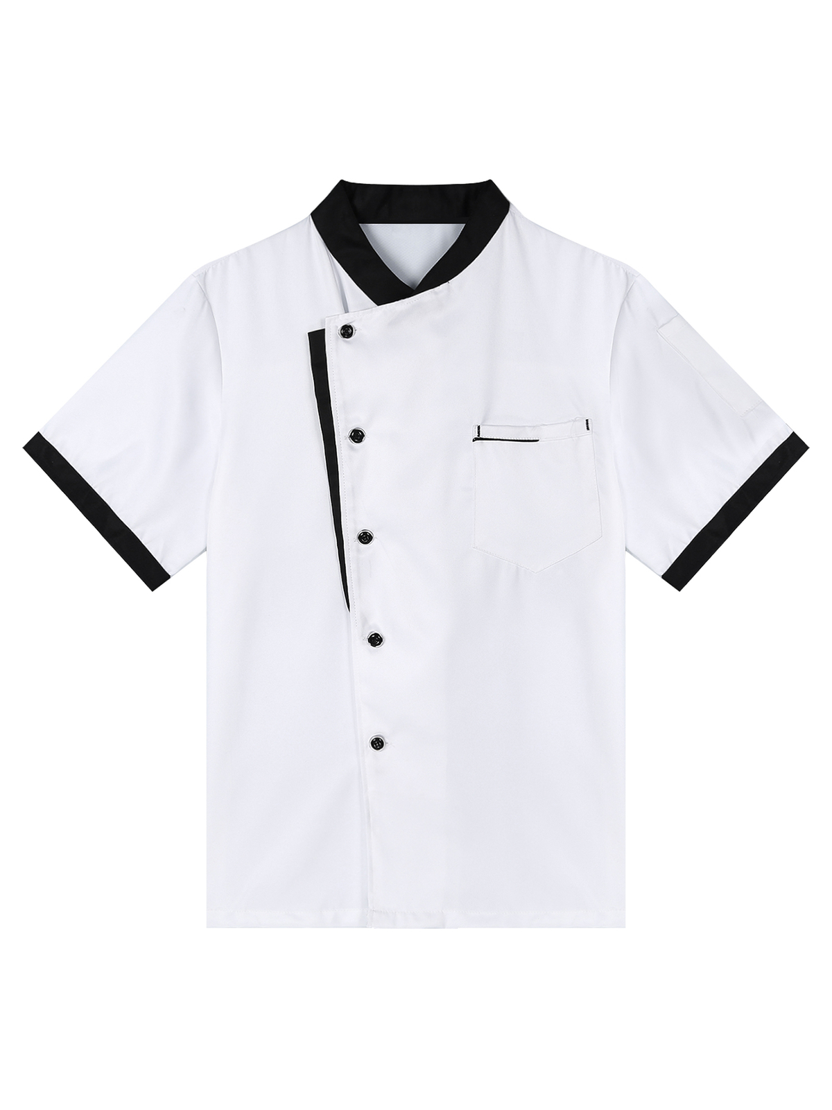 Men Women T-shirt Chef Coat Breathable Button Cook Jacket Hotel Kitchen Uniform