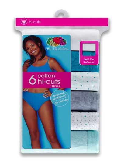 Fruit Of The Loom Assorted Cotton Hi Cut Briefs 6 Pack 6DHICA2
