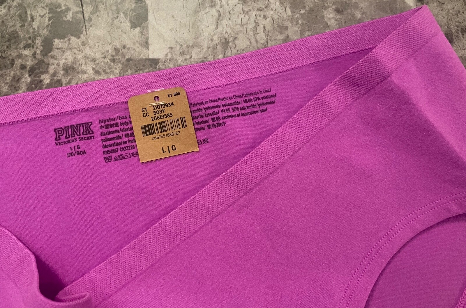 как выглядит NWT VICTORIAS SECRET PINK LARGE LILAC PURPLE BUTTERFLY SEAMLESS HIPSTER PANTIES фото