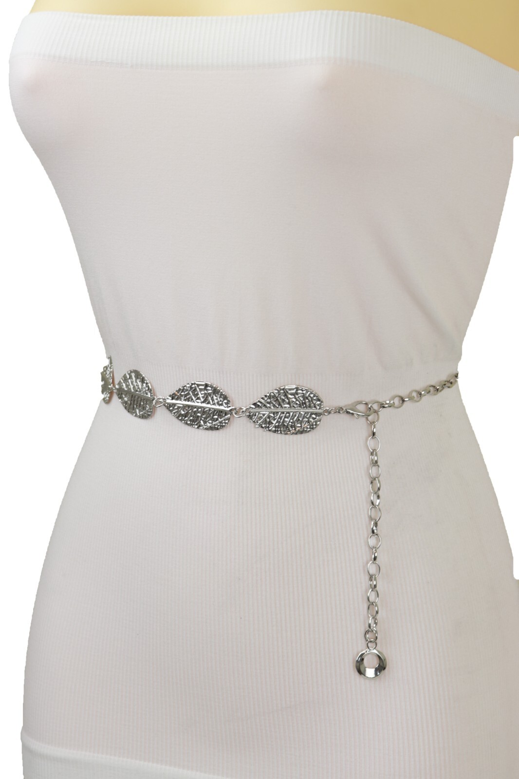 как выглядит Women Silver Metal Chain Thin Waistband Fancy Fashion Belt Leaf Charms Size S M фото