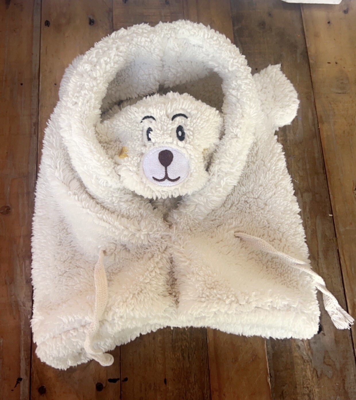 как выглядит Kids Winter Cartoon Bear Ears Plush Integrated Hat фото