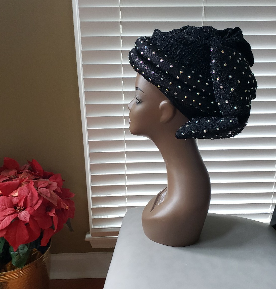 ZHARA Twist African autogele/ Hat, Readytowear Black with stones