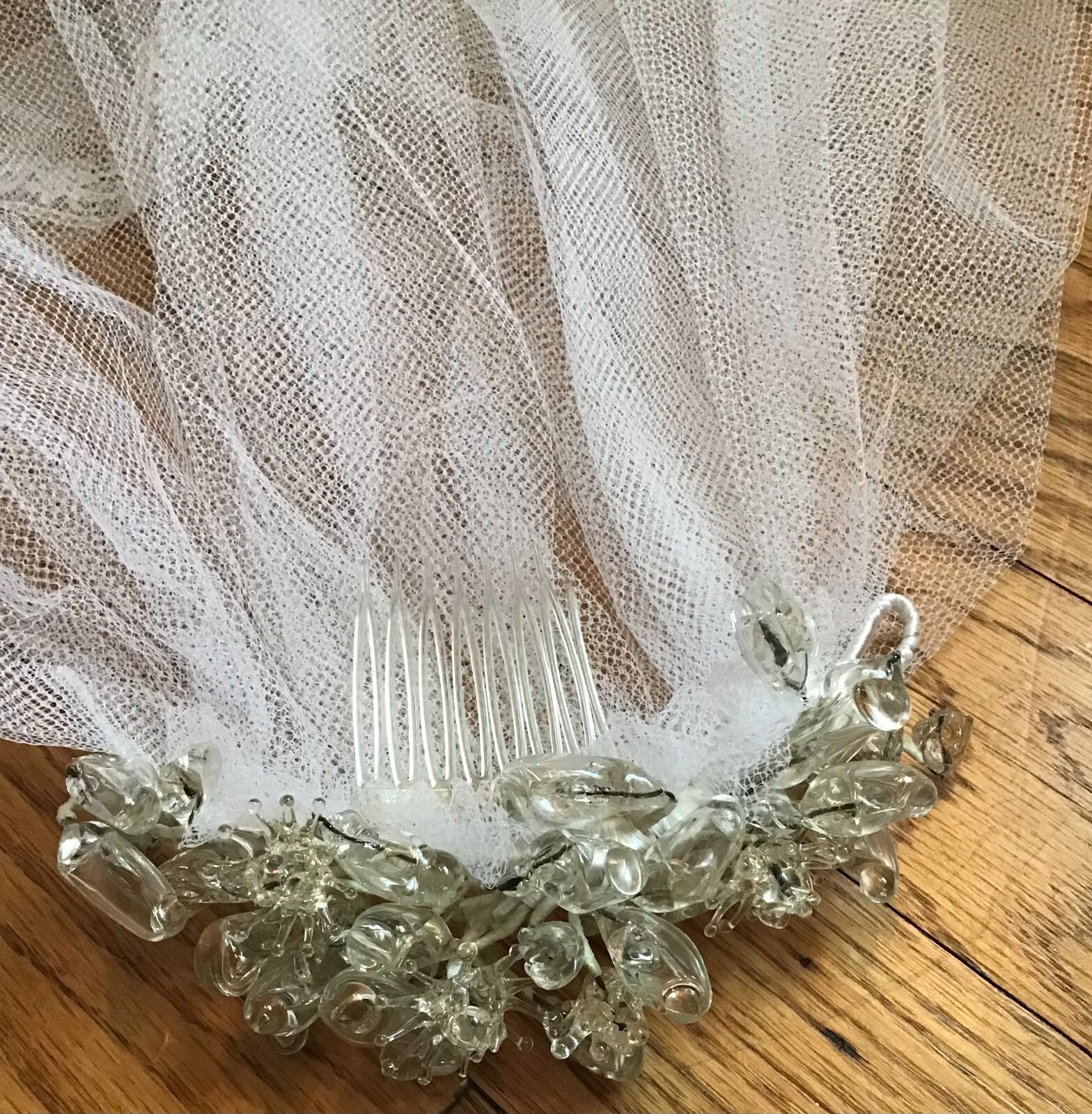 Vintage Girls Holy First Communion Veil 1970s Crystal Glass Beaded Hair Comb