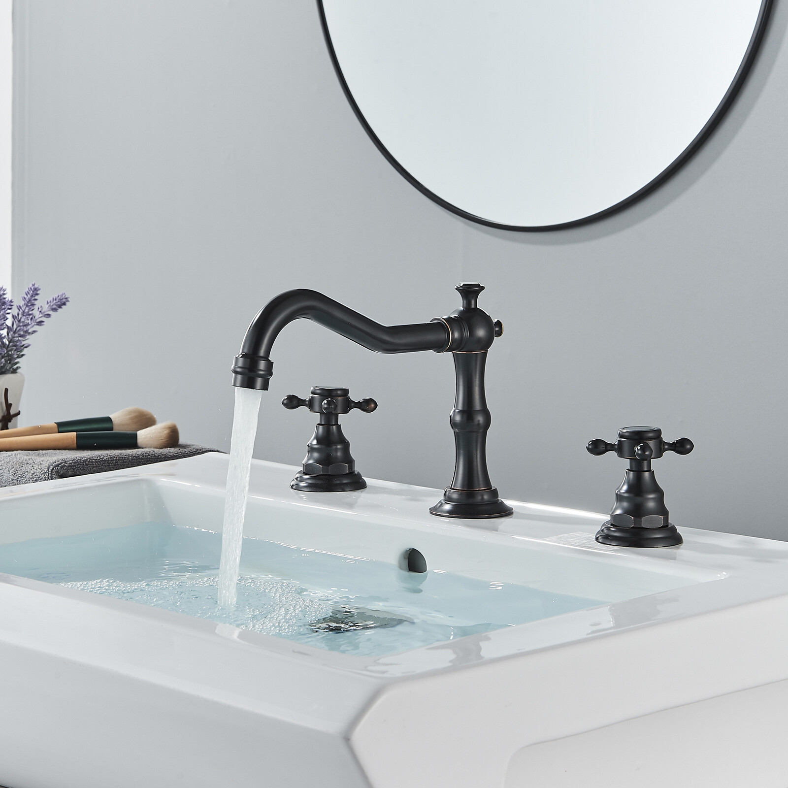Brass Bathroom Basin Sink Faucet Dual plum Handle 3 Holes Lavatory Mixer Tap
