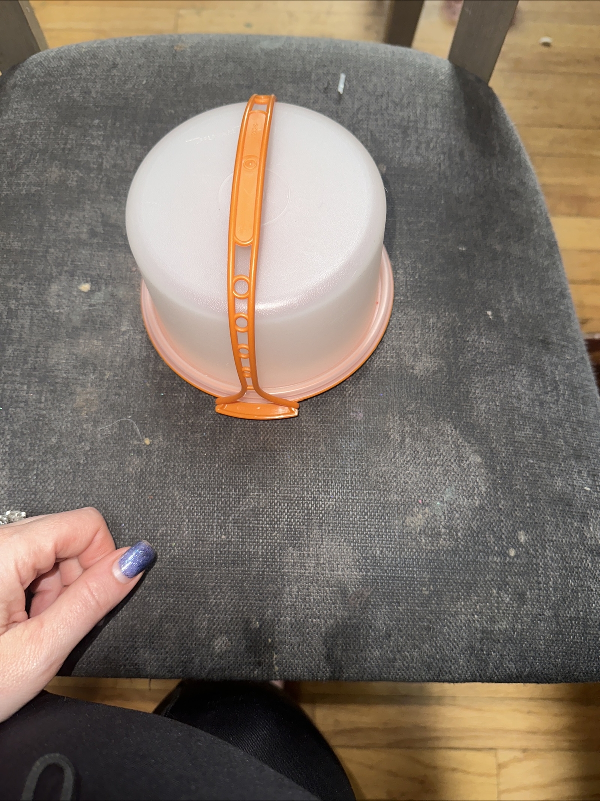 как выглядит Tupperware Toys Mini CAKE SAVER Taker Keeper with Handle orange фото