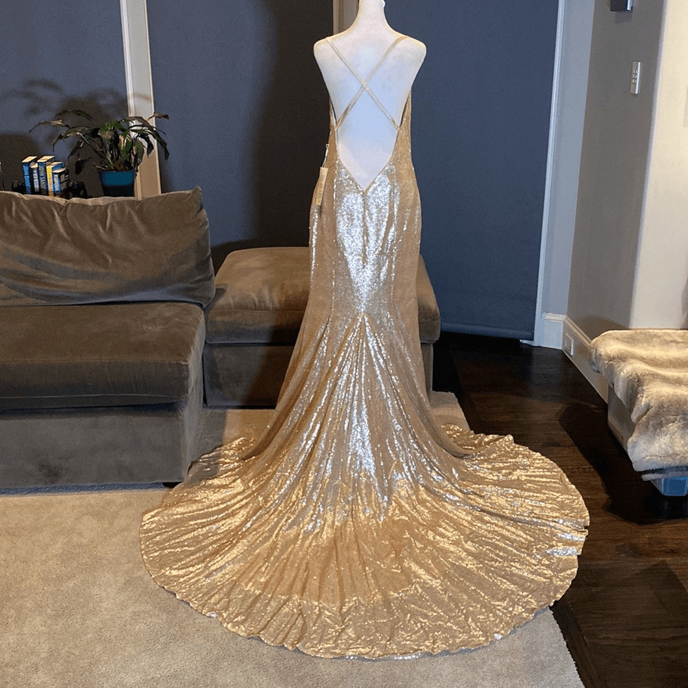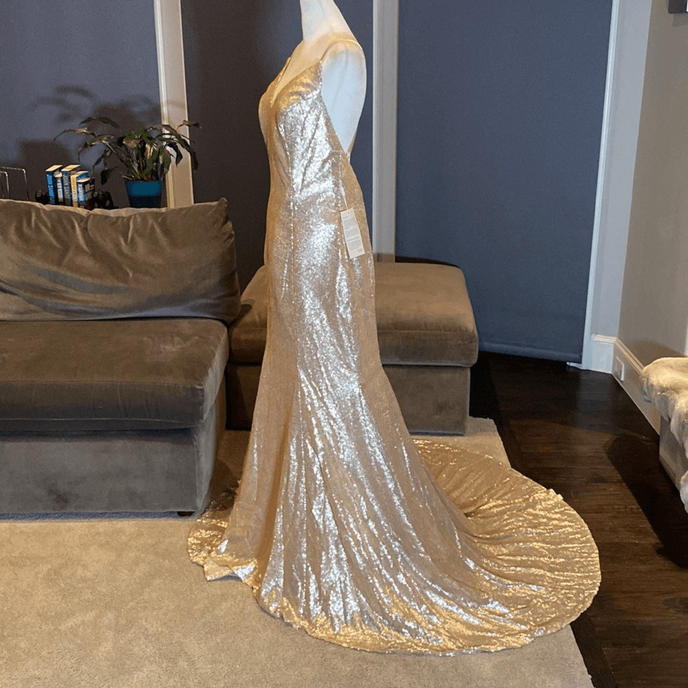 Women s Gorgeous Fully Sequined Prom Party Dress Mermaid Fit Train Size L NWT