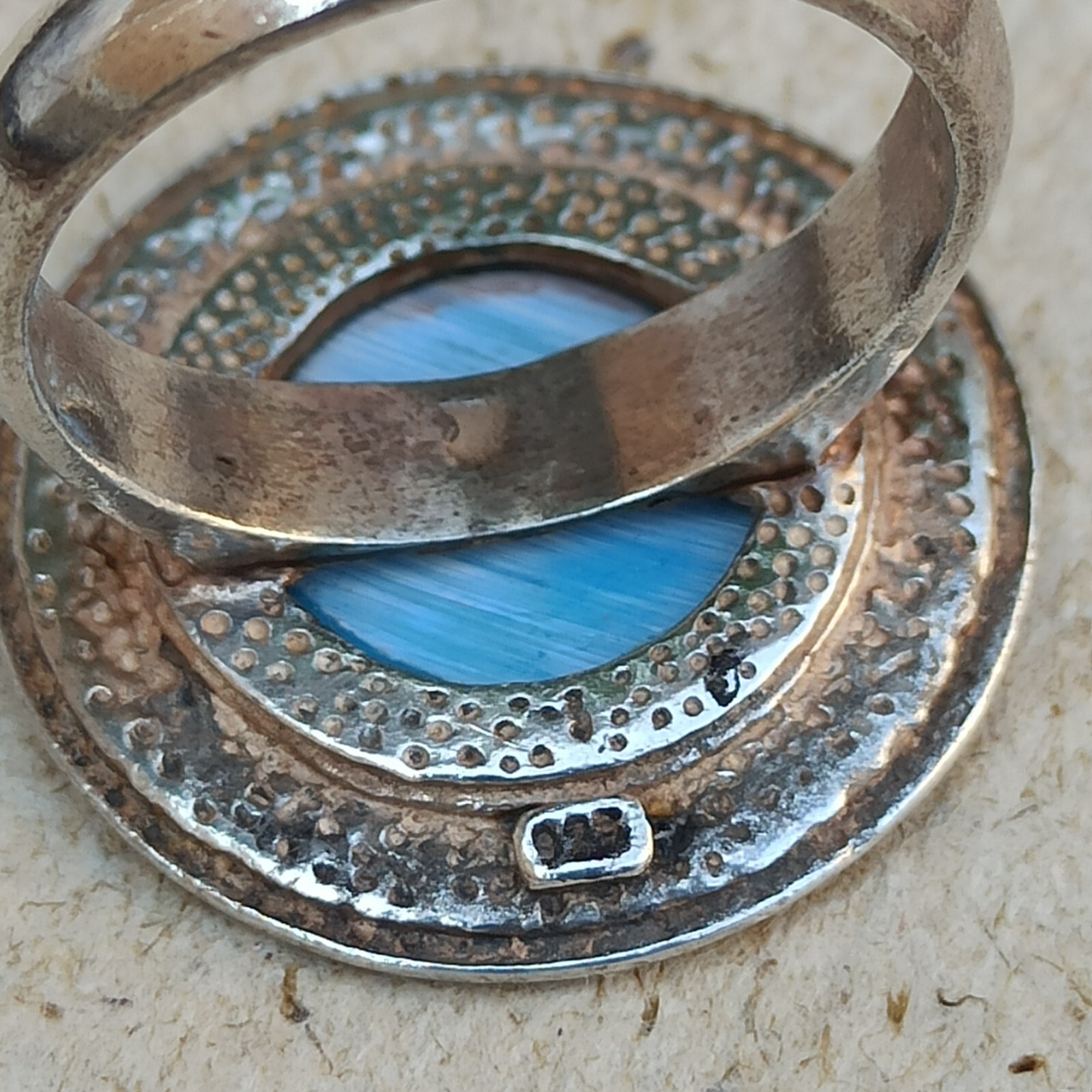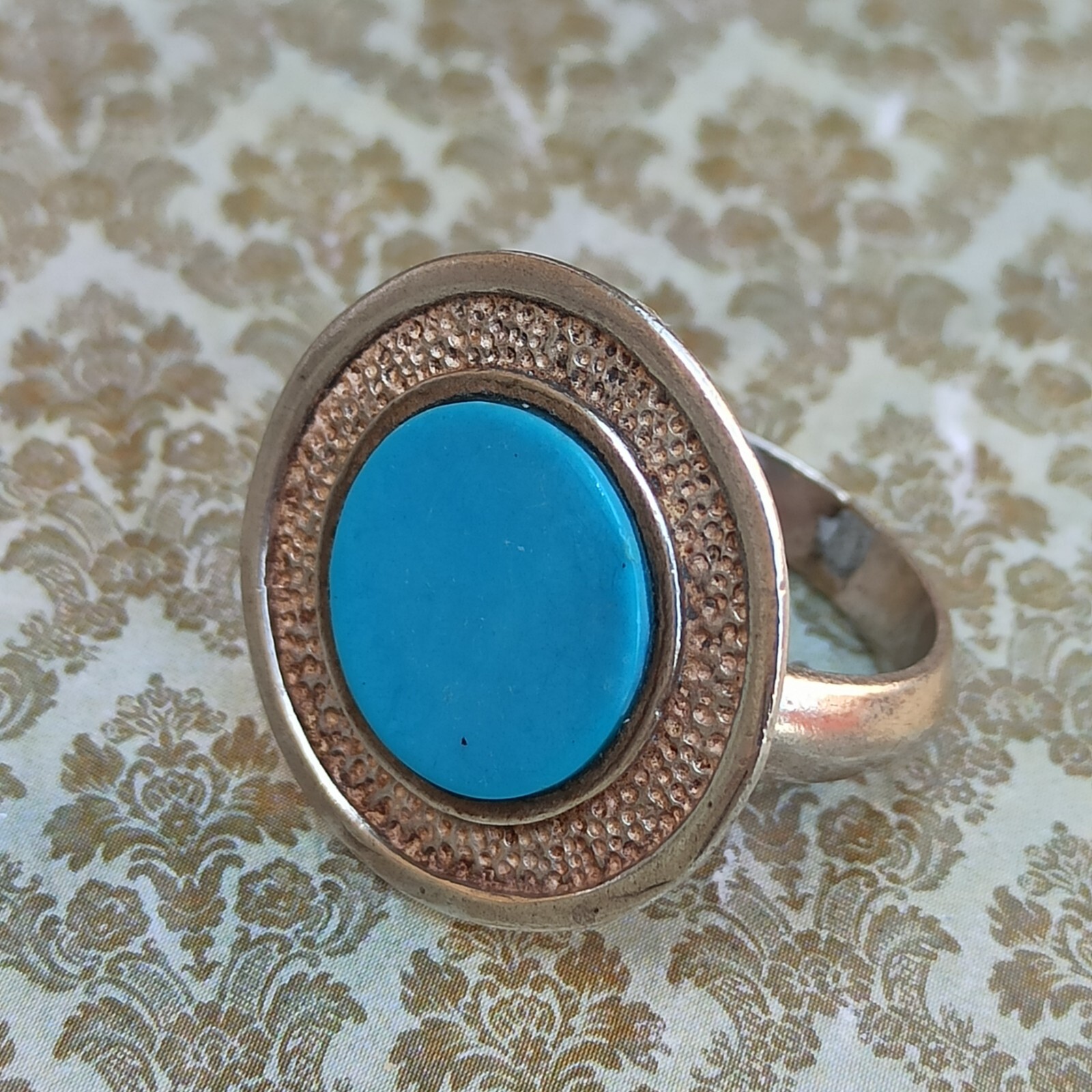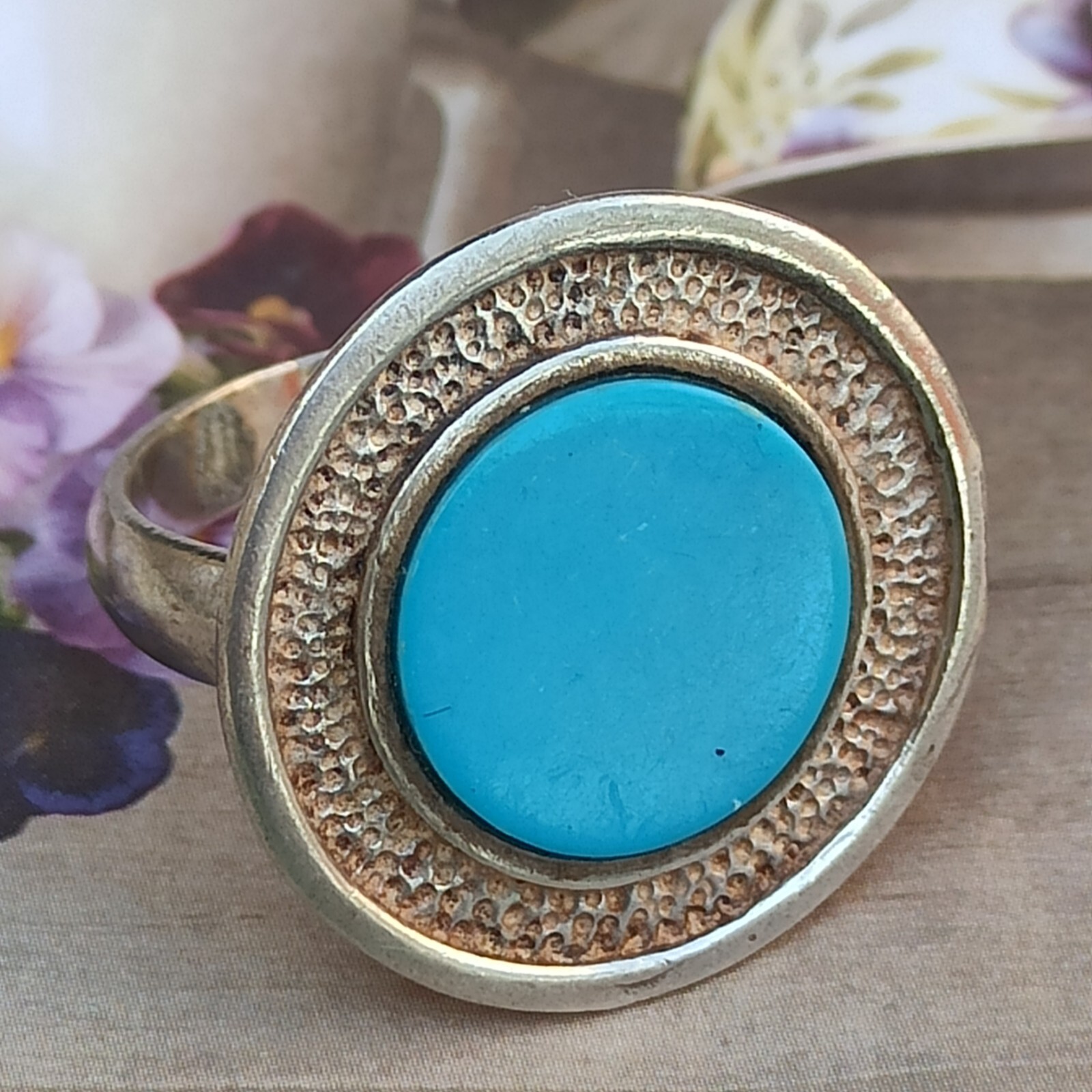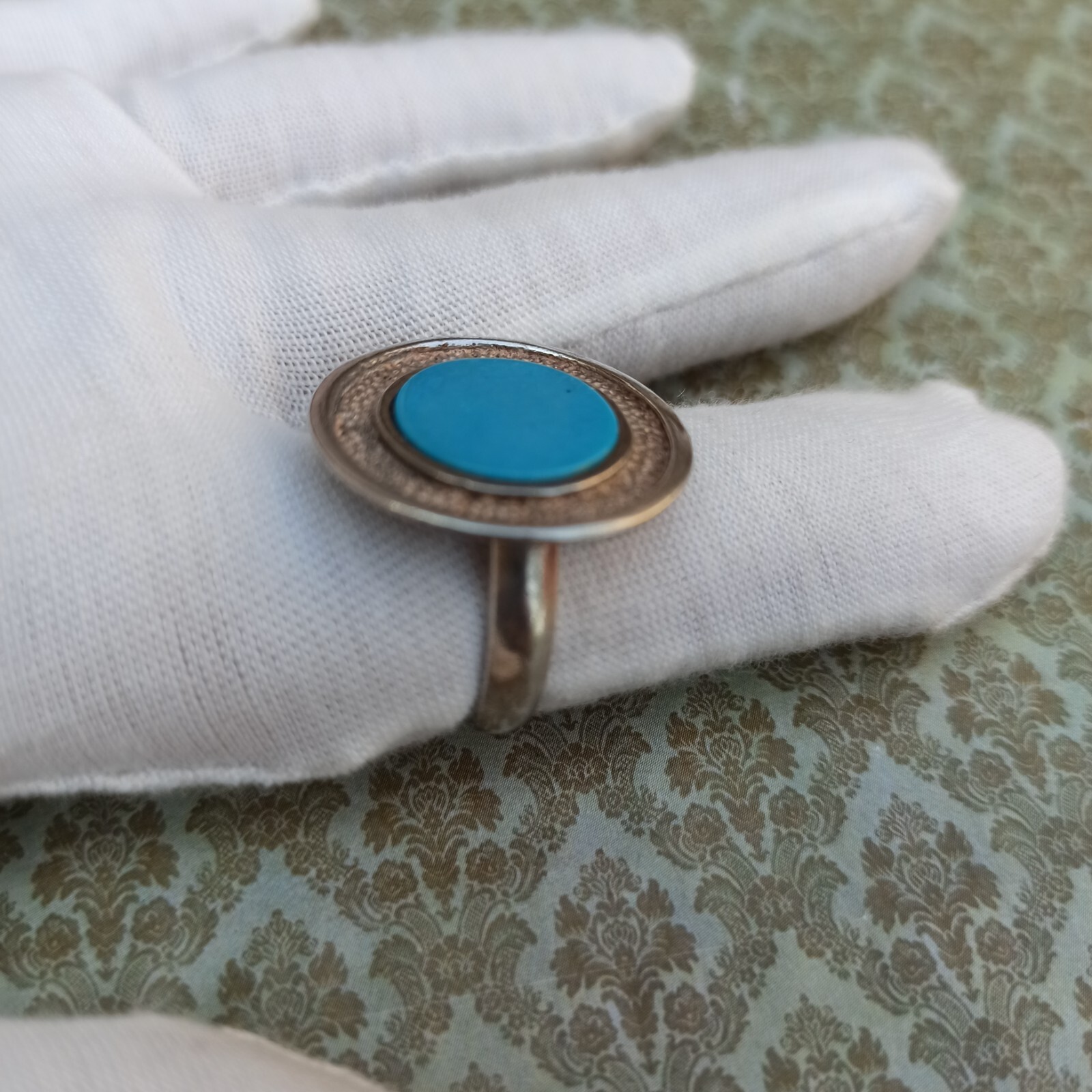 как выглядит Vintage Ring Turquoise Israeli Art Solid Silver Round Blue Dimple Modernist Gift фото