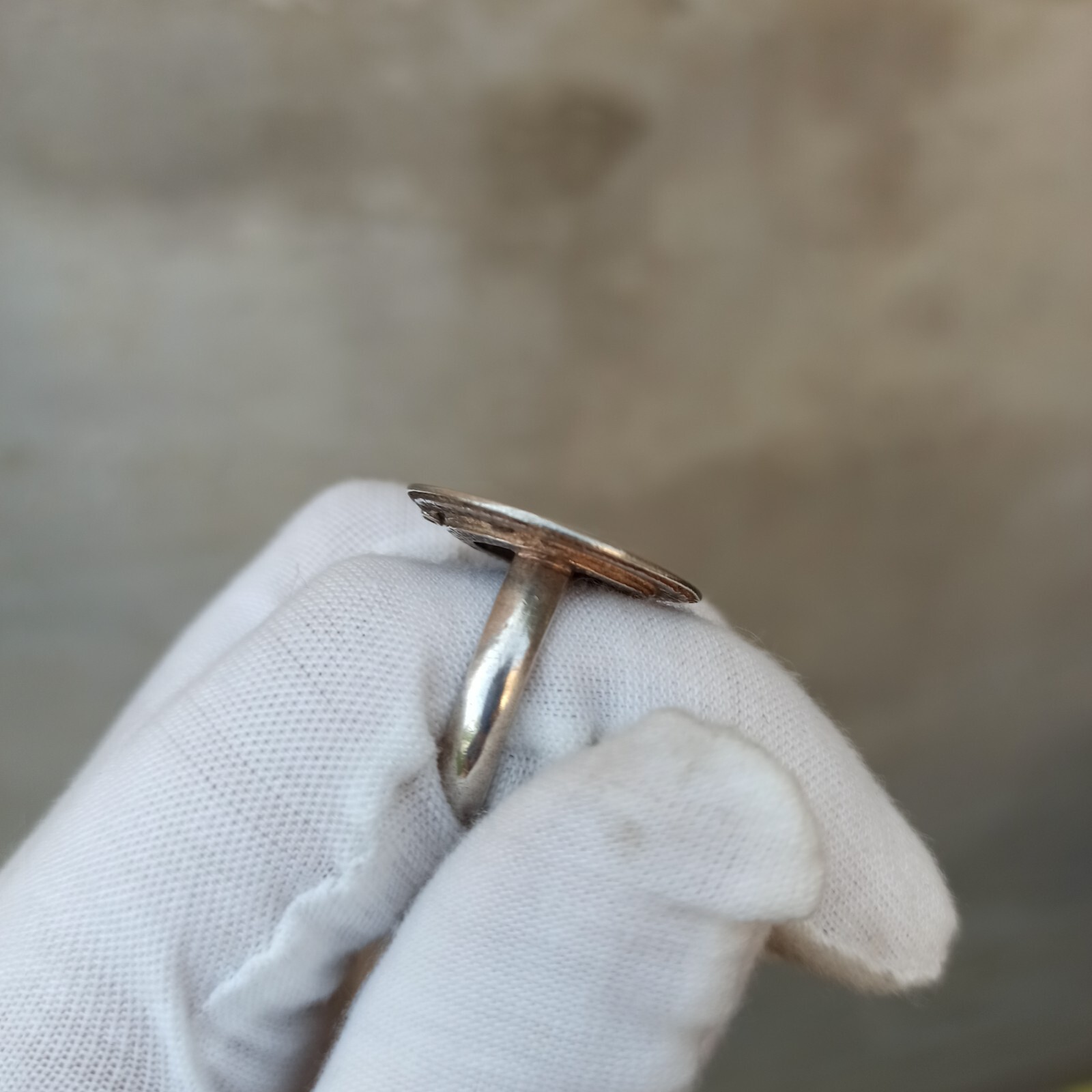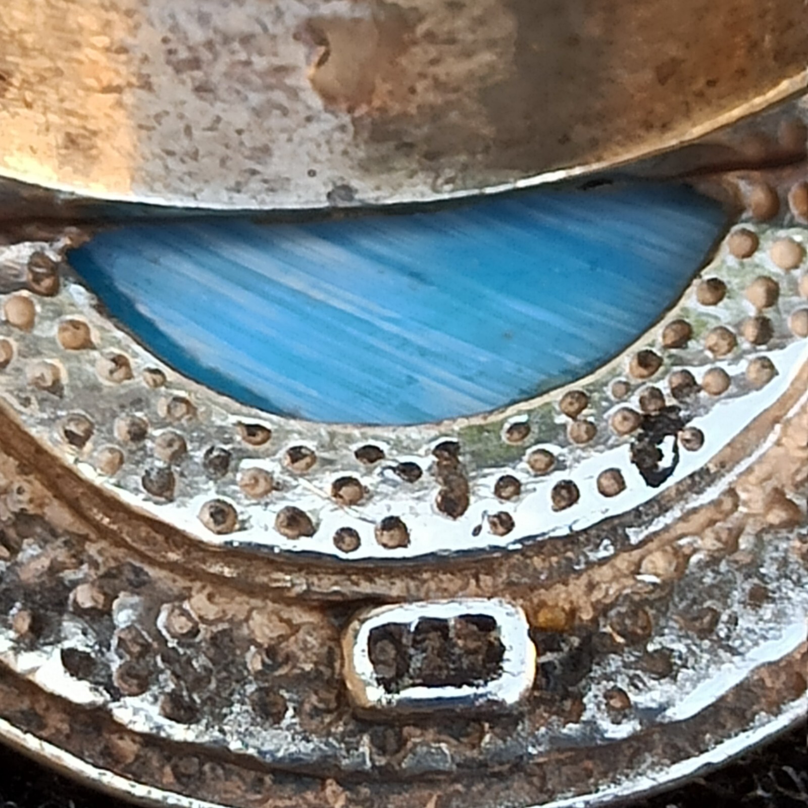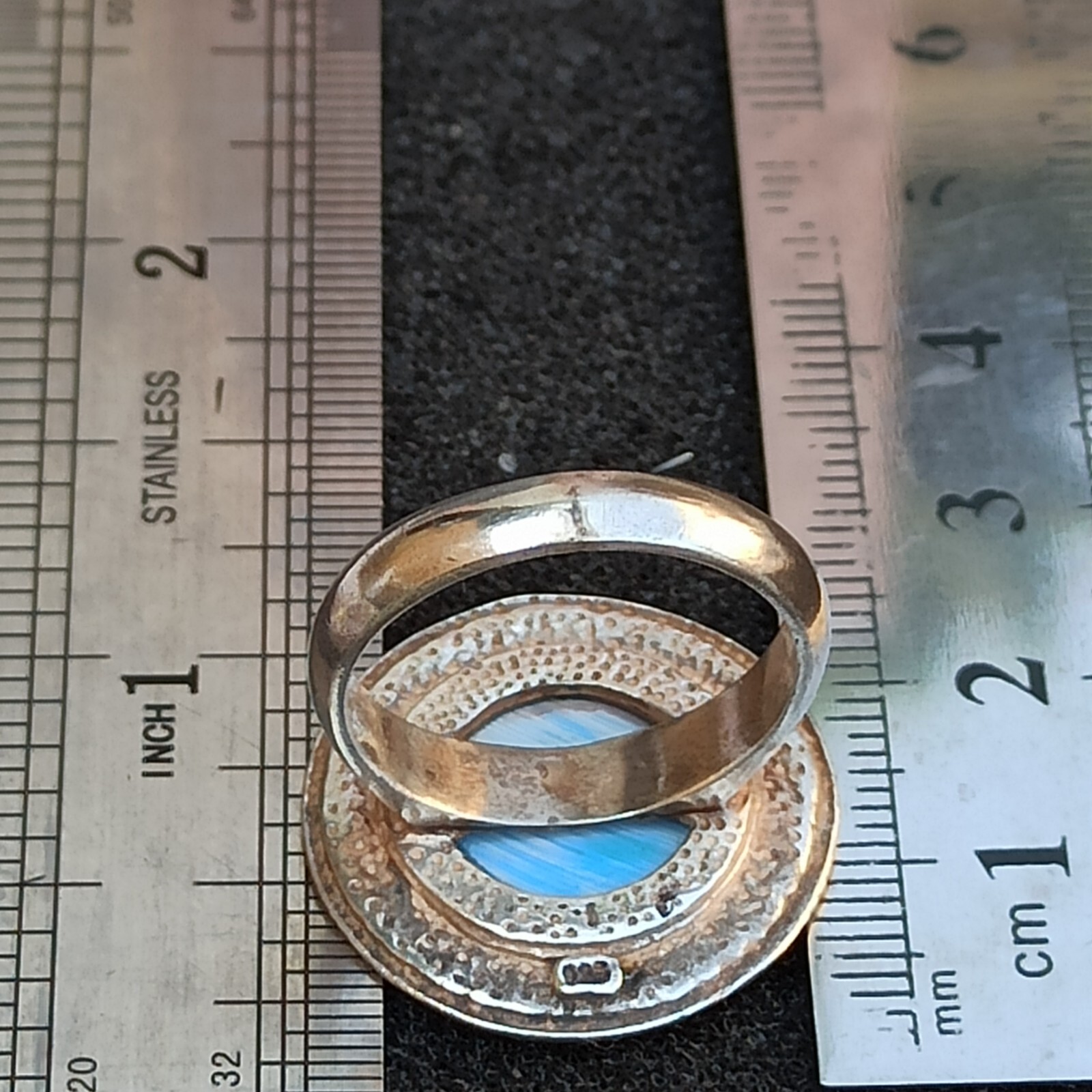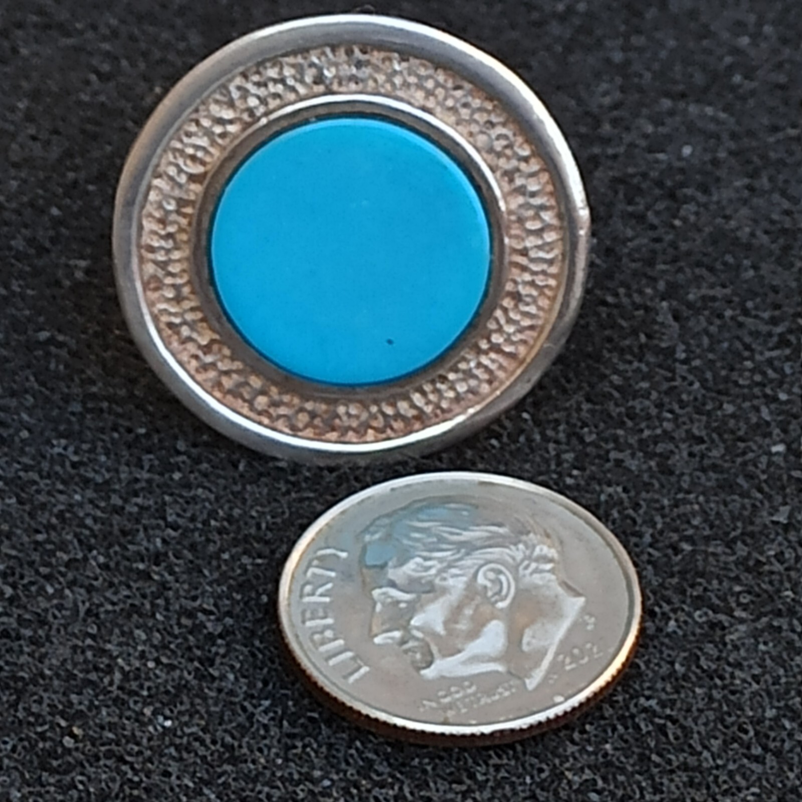 как выглядит Vintage Ring Turquoise Israeli Art Solid Silver Round Blue Dimple Modernist Gift фото