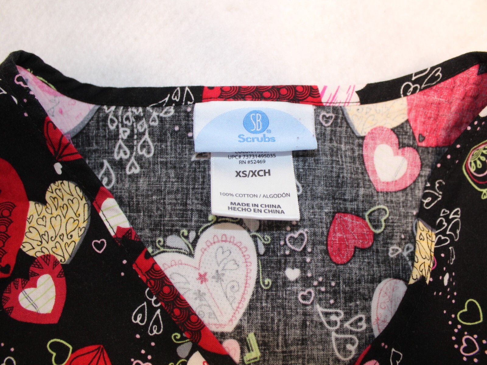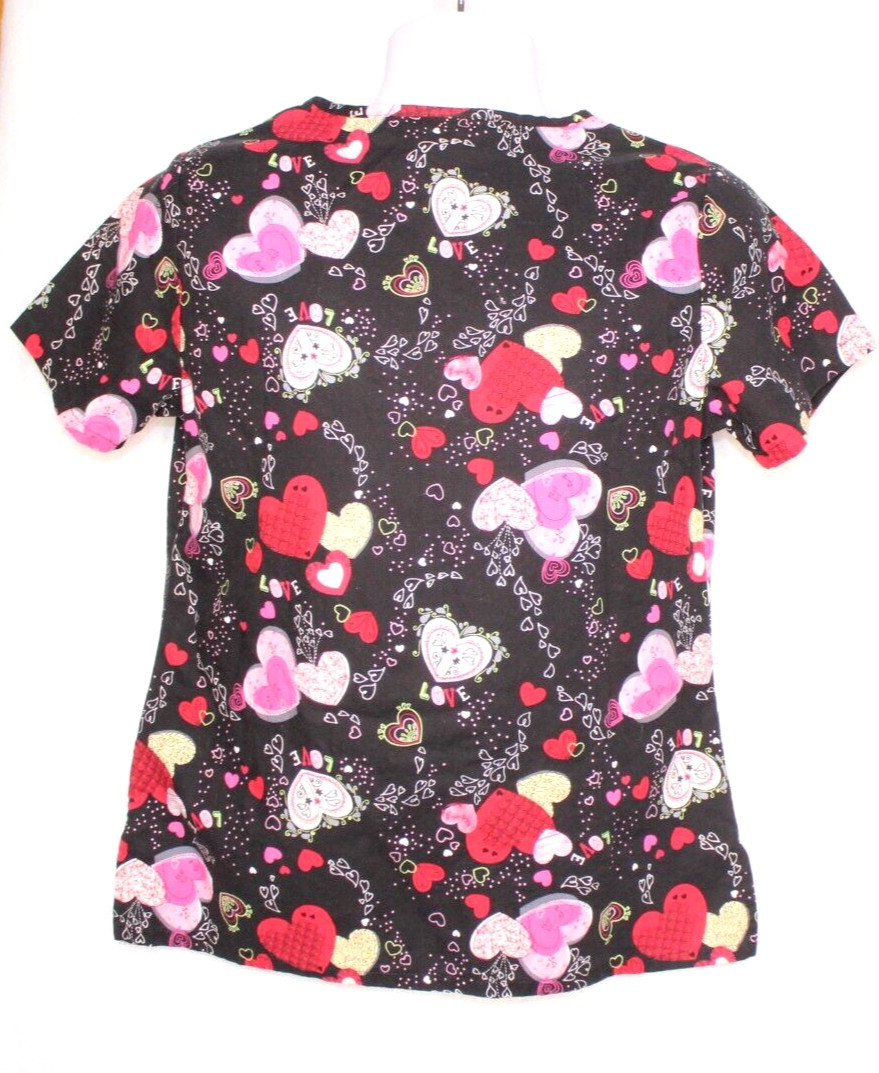 как выглядит Scrubs Womens XS Top Multicolor hearts Medical Dental Veterinary Techs фото