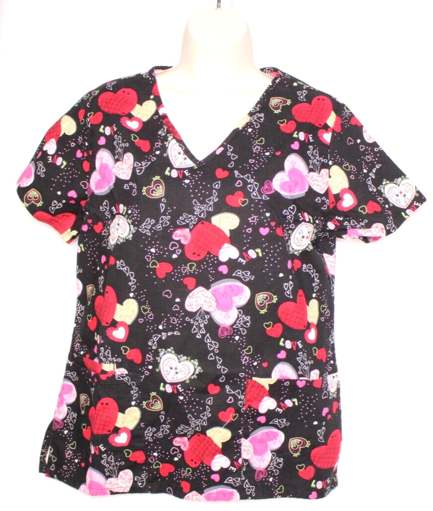 Scrubs Women's XS Top Multicolor hearts Medical Dental Veterinary Techs