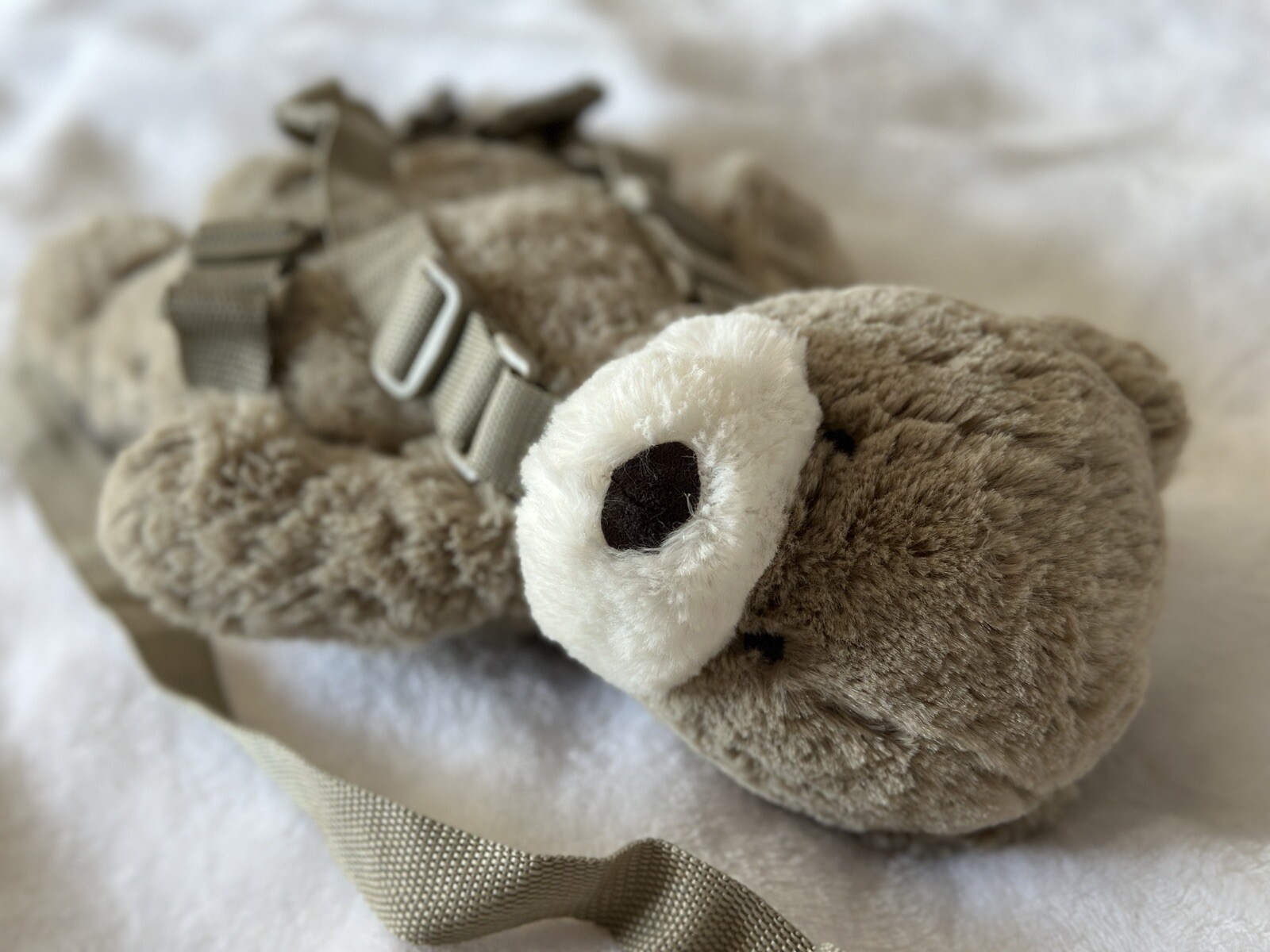 как выглядит Eddie Bauer Gray Bear 2-1 Backpack Harness Safety Leash, Pouch, Plush фото