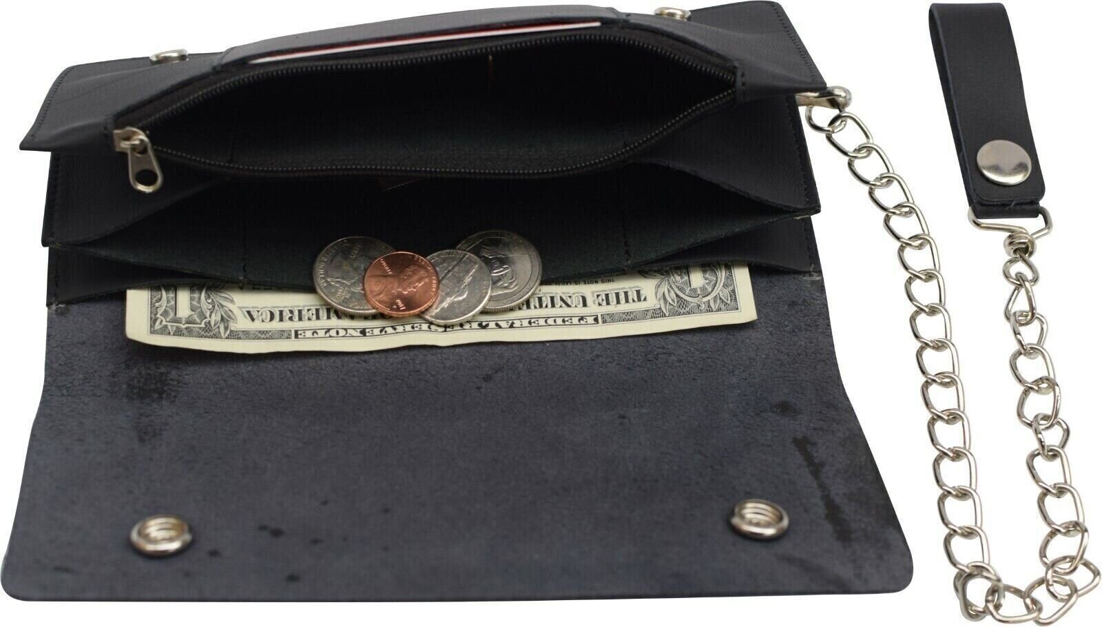 Leather Motorcycle Trucker Biker Chain Wallet With Inside Zipper Black