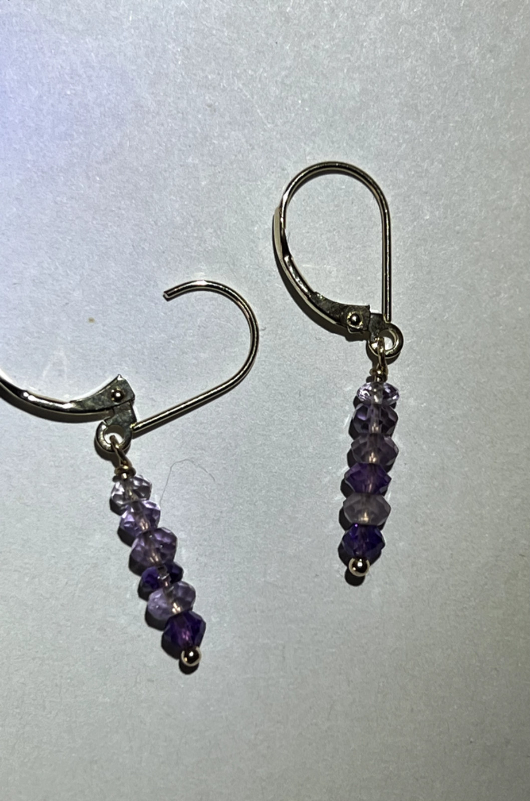 Stunning 14 Kt Yellow Gold Earrings Amethyst Faceted Beads Dangle Cute Kidney