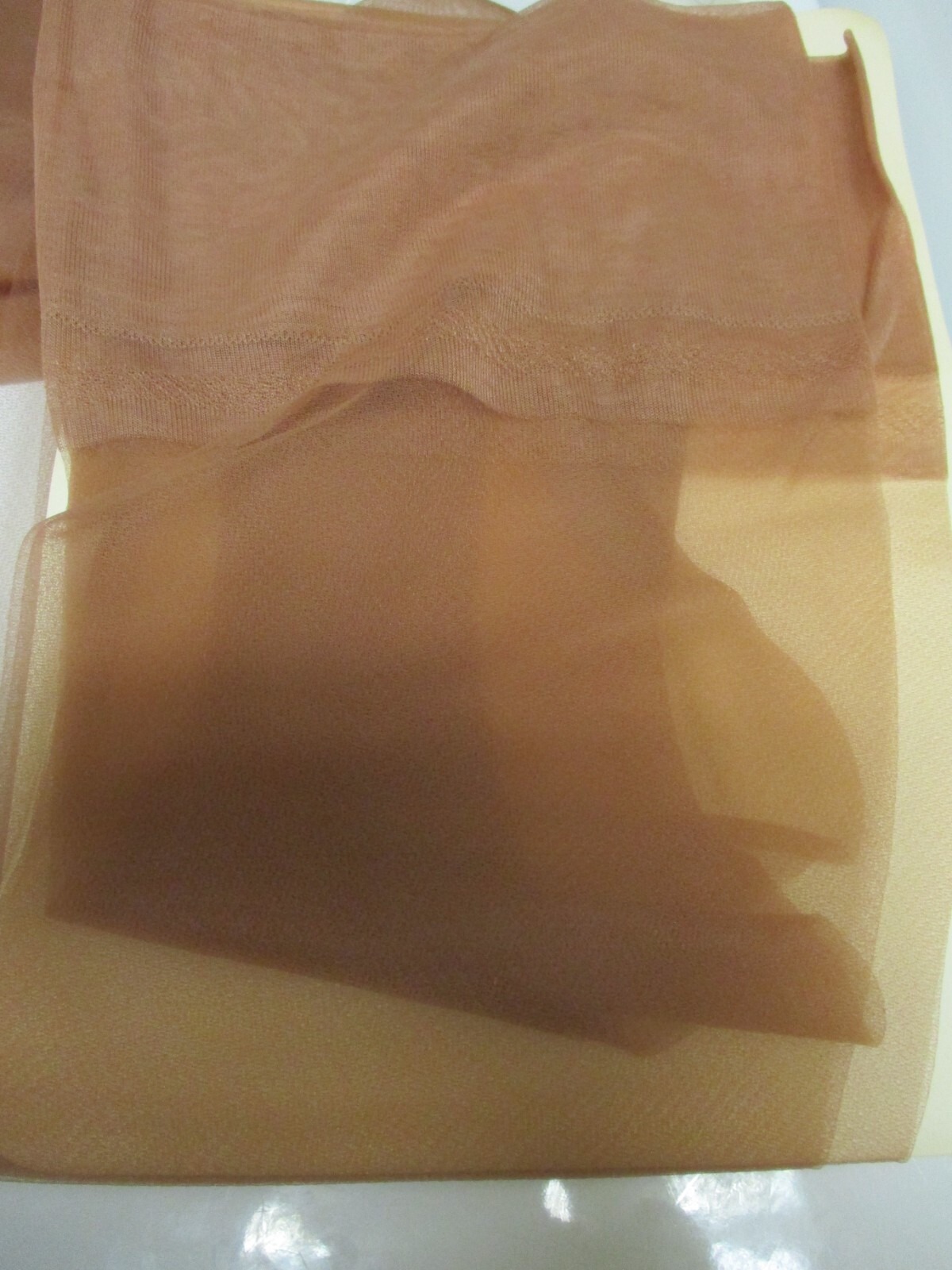 как выглядит 1 PR VINTAGE UNBRANDED RT SHEER HE MICRO MESH NYLON STOCKINGS SIZE 9 MED BEIGE фото