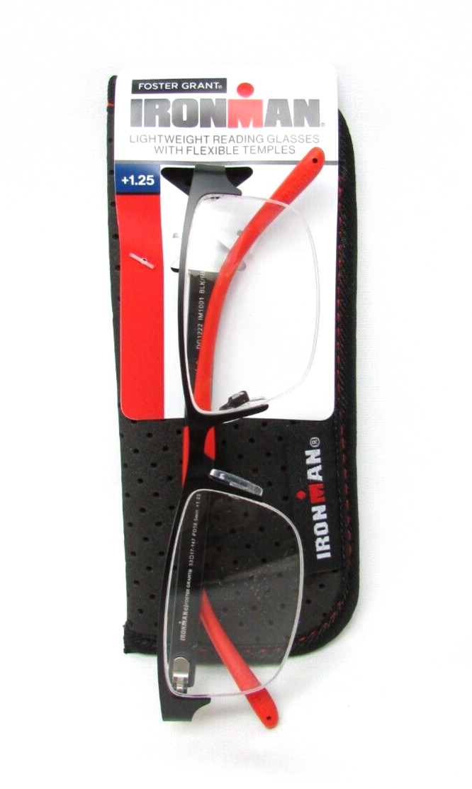 NEW Foster Grant Ironman IM1001 BLK/RED Half Rim Reading Glasses with Soft Case