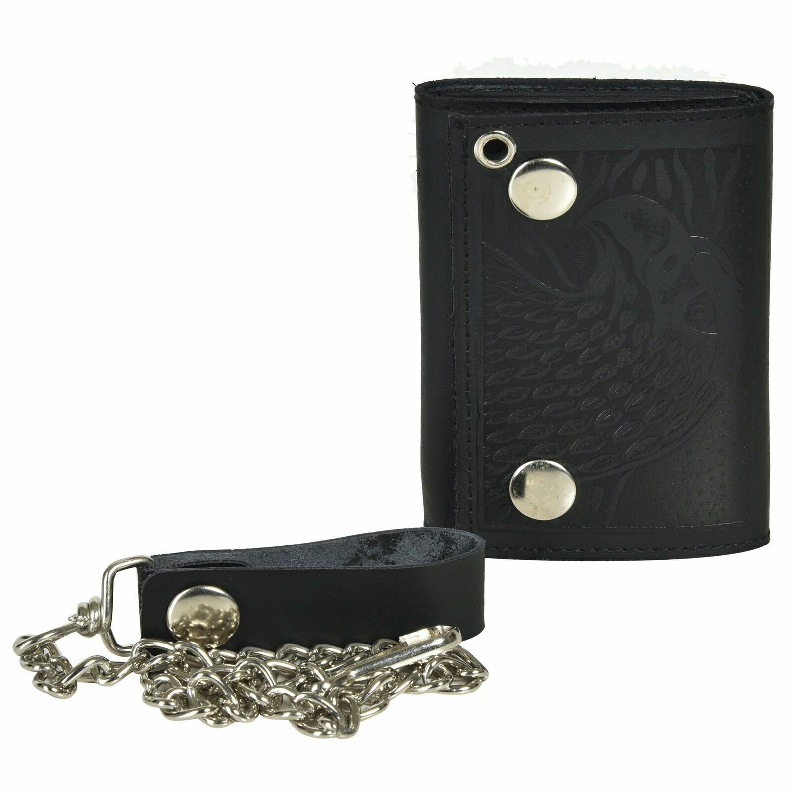 как выглядит RFID Genuine Leather Trifold Long Chain Wallet for Men EAGLE USA - Black фото