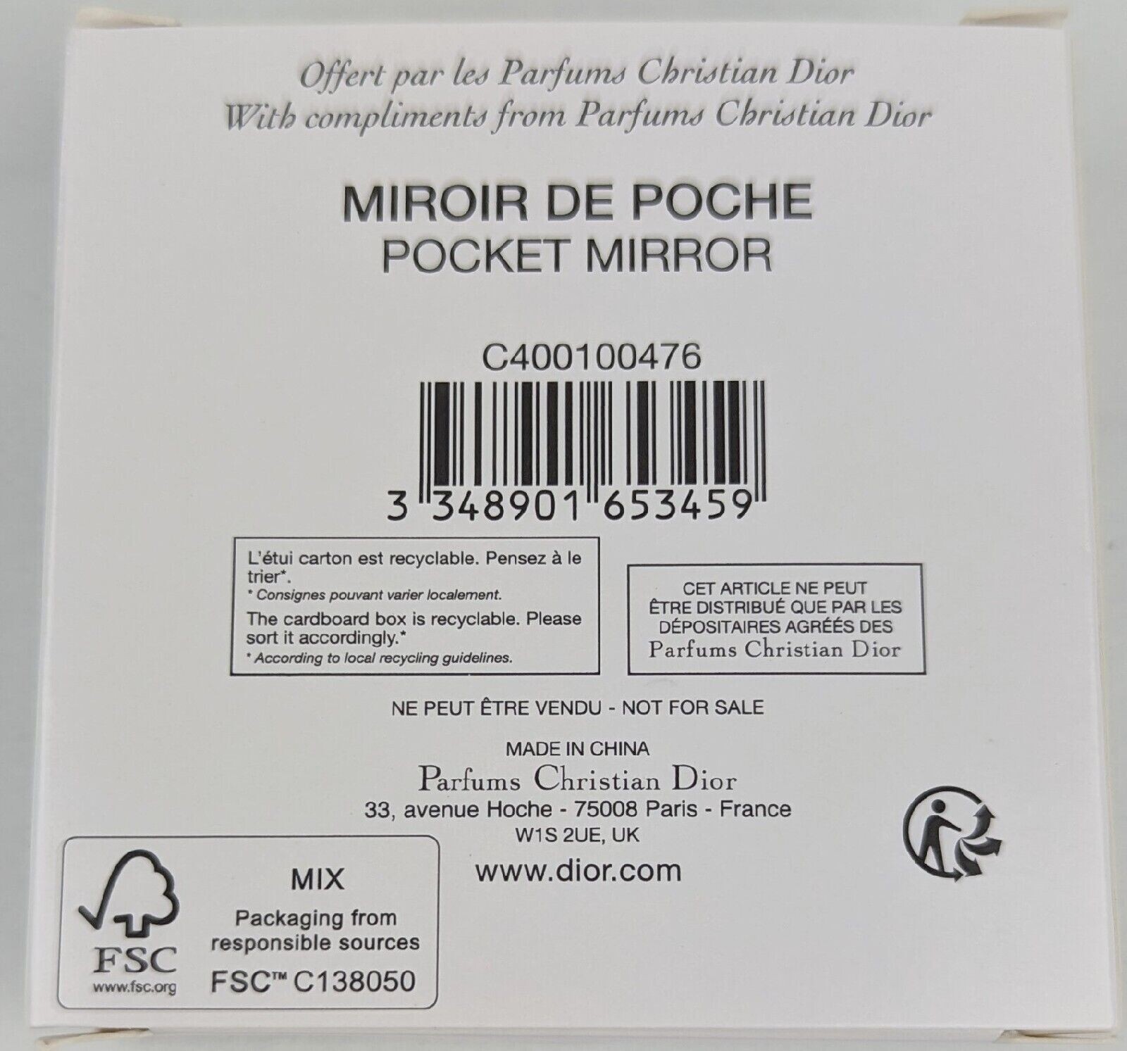 NEW IN BOX Authentic Dior Quilted Logo Pocket Mirror