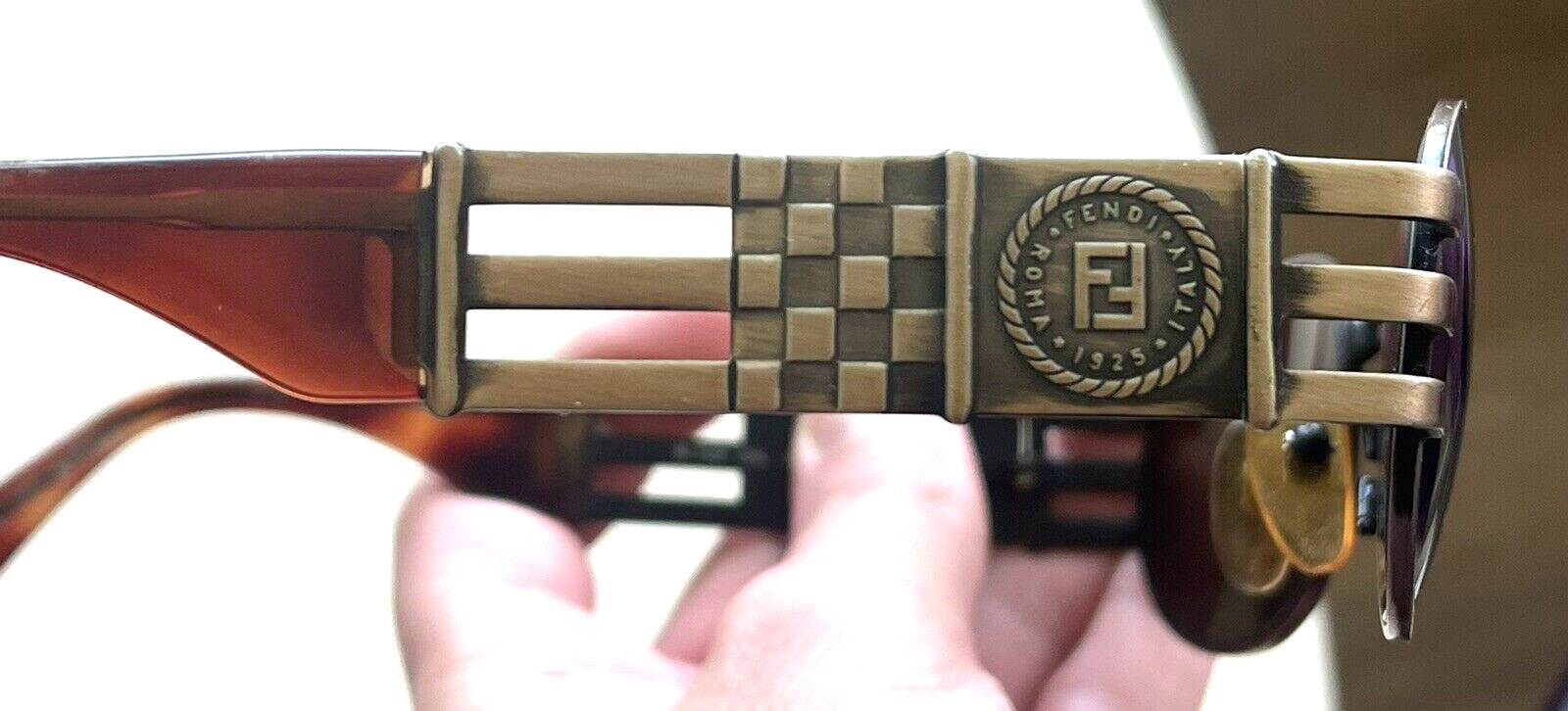 Vintage Fendi Sunglasses SL 7028 COL 518 Mod Checkered Bronze Tone Glasses Rare