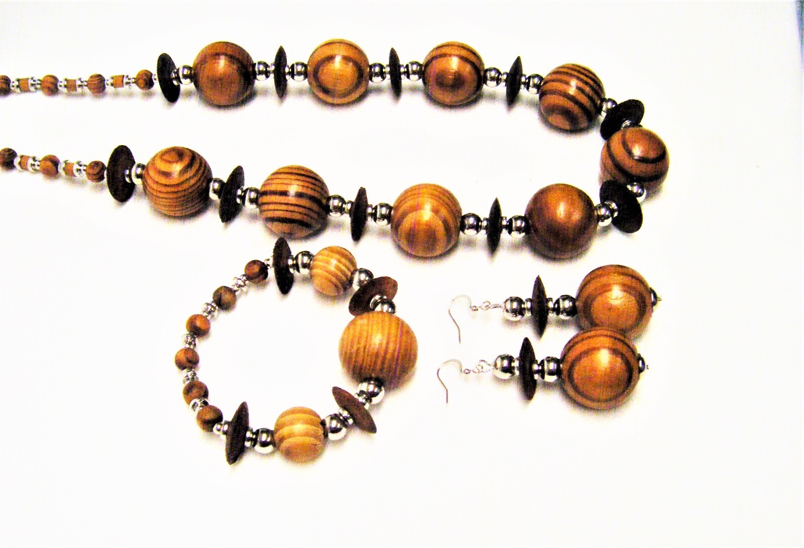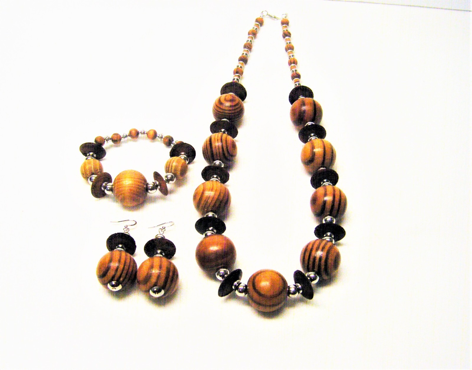 Natural Brown Swirl Wood Bead Necklace/Bracelet/Earrings Set