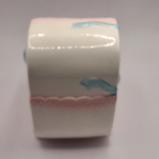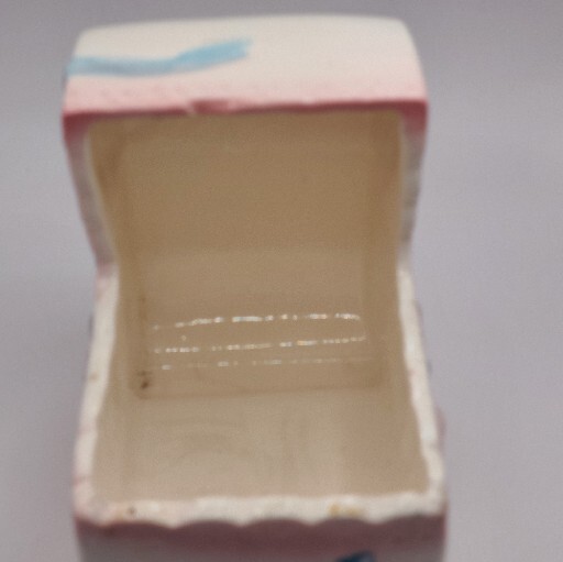 как выглядит Planter baby ceramic bassinet. Blue ribbon w/ cat on rug. Taiwan. Says For Baby. фото
