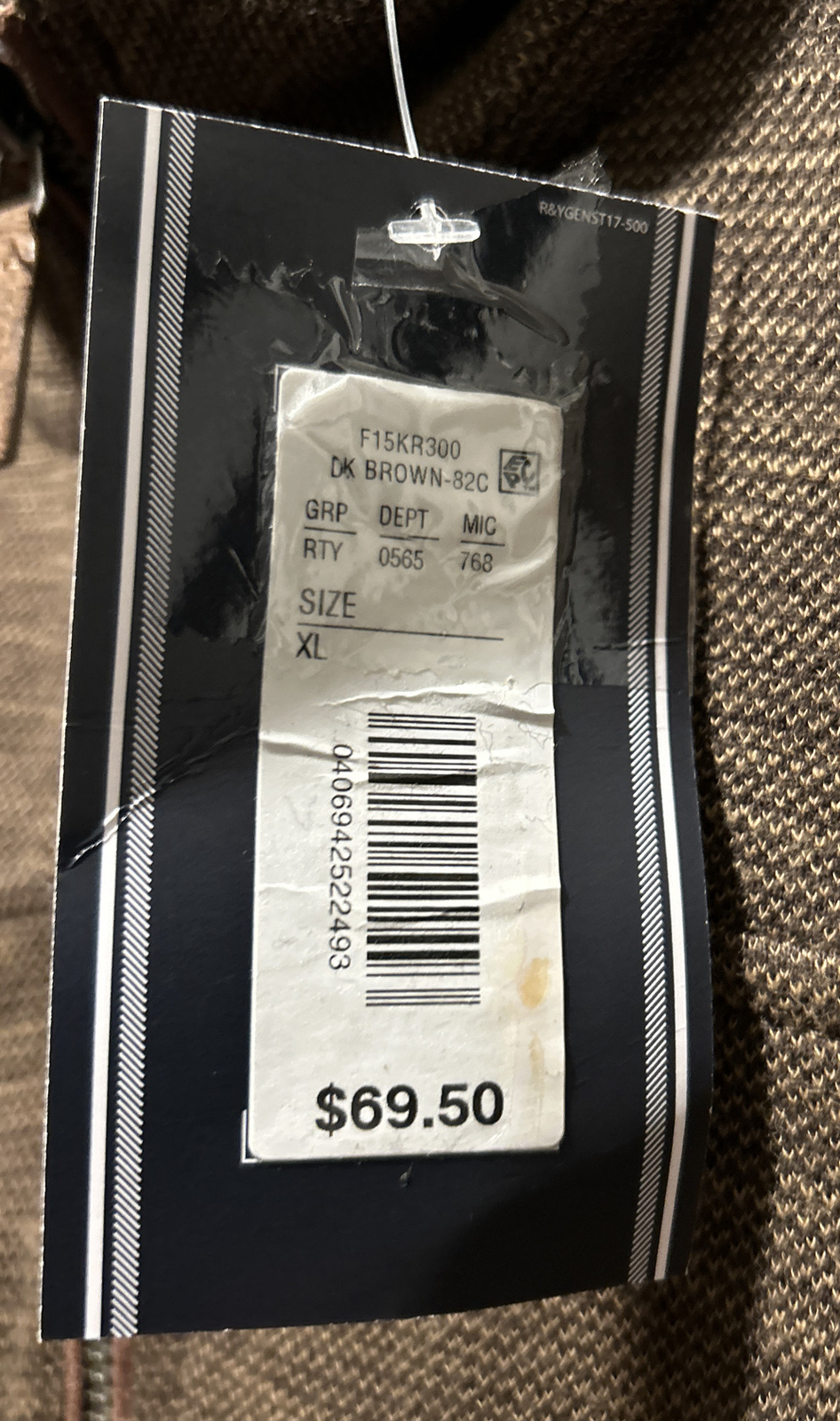 NWT Men s Roundtree York XL Dk Brown-82C 1/4 Zip Mock Turtleneck- Ret 69.50