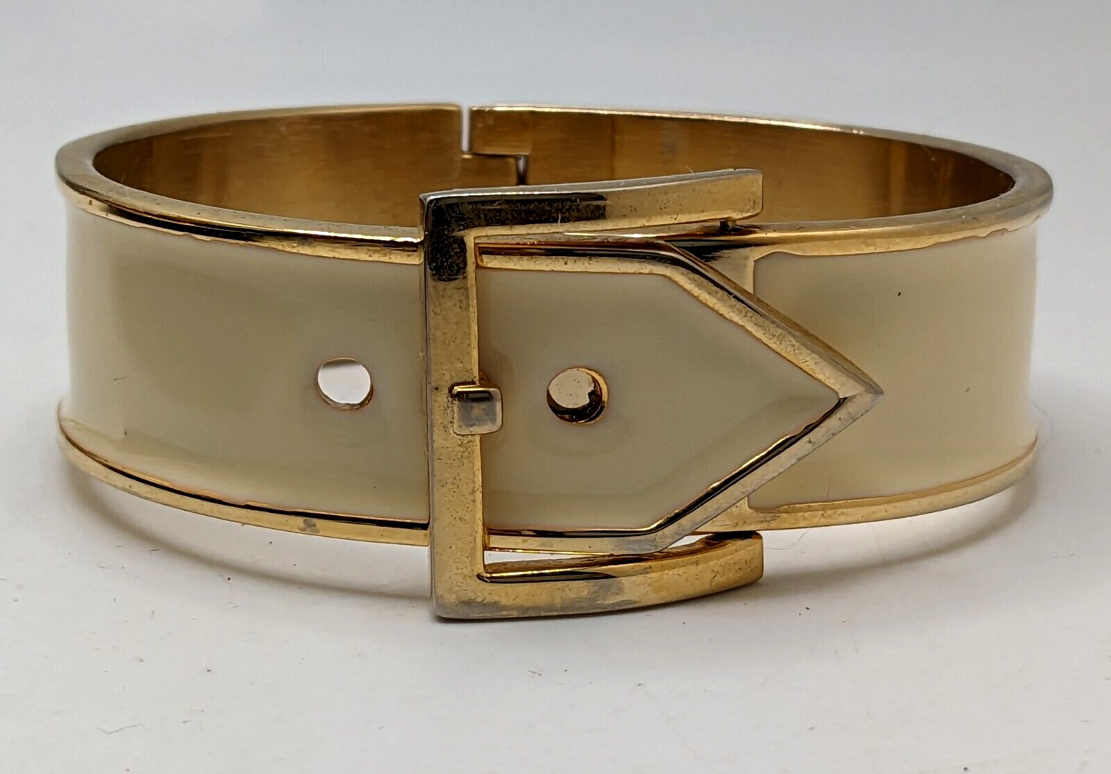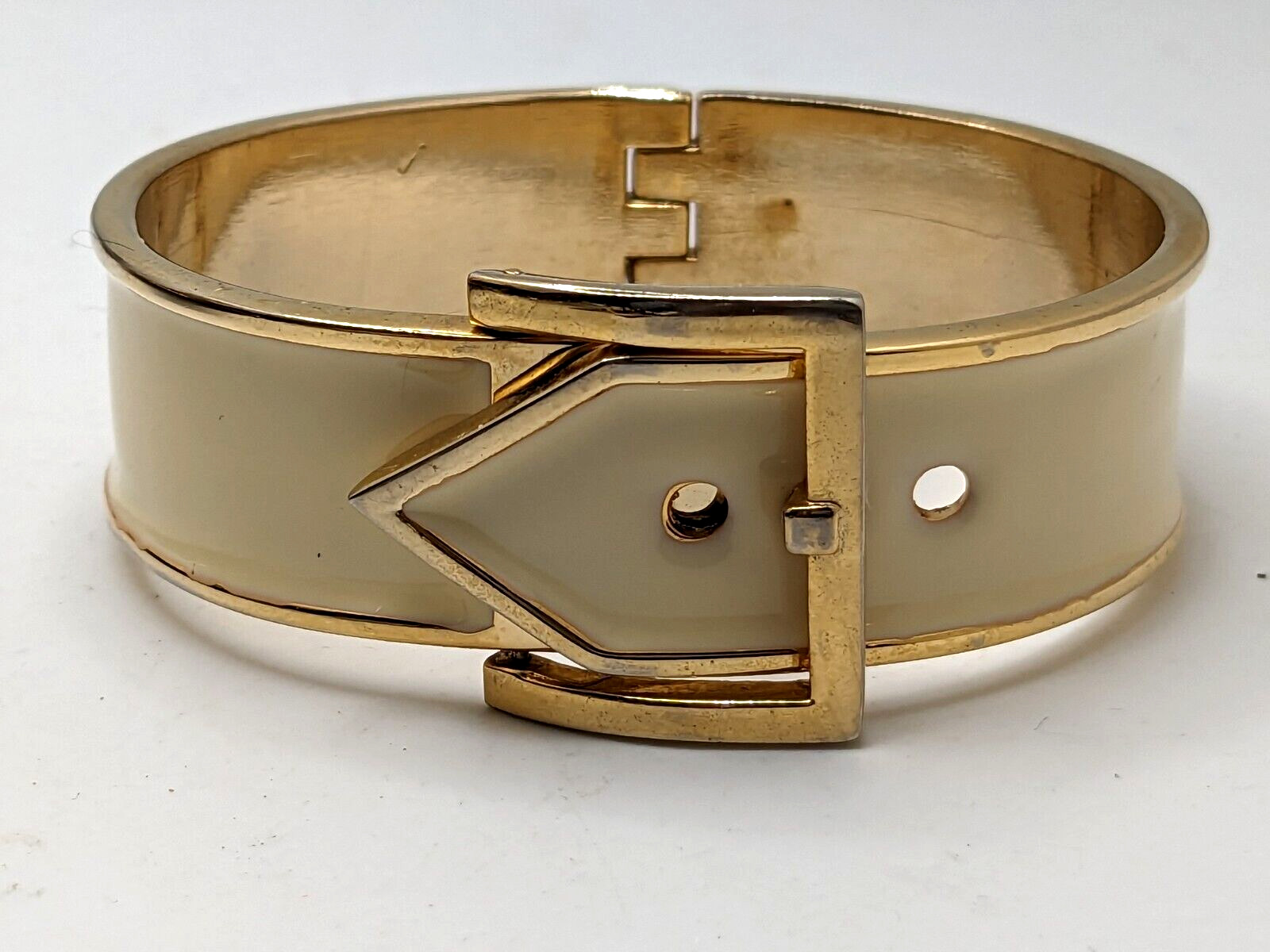 Vintage gold tone Hinged 0.75 wide off white Enamel Bracelet fashion