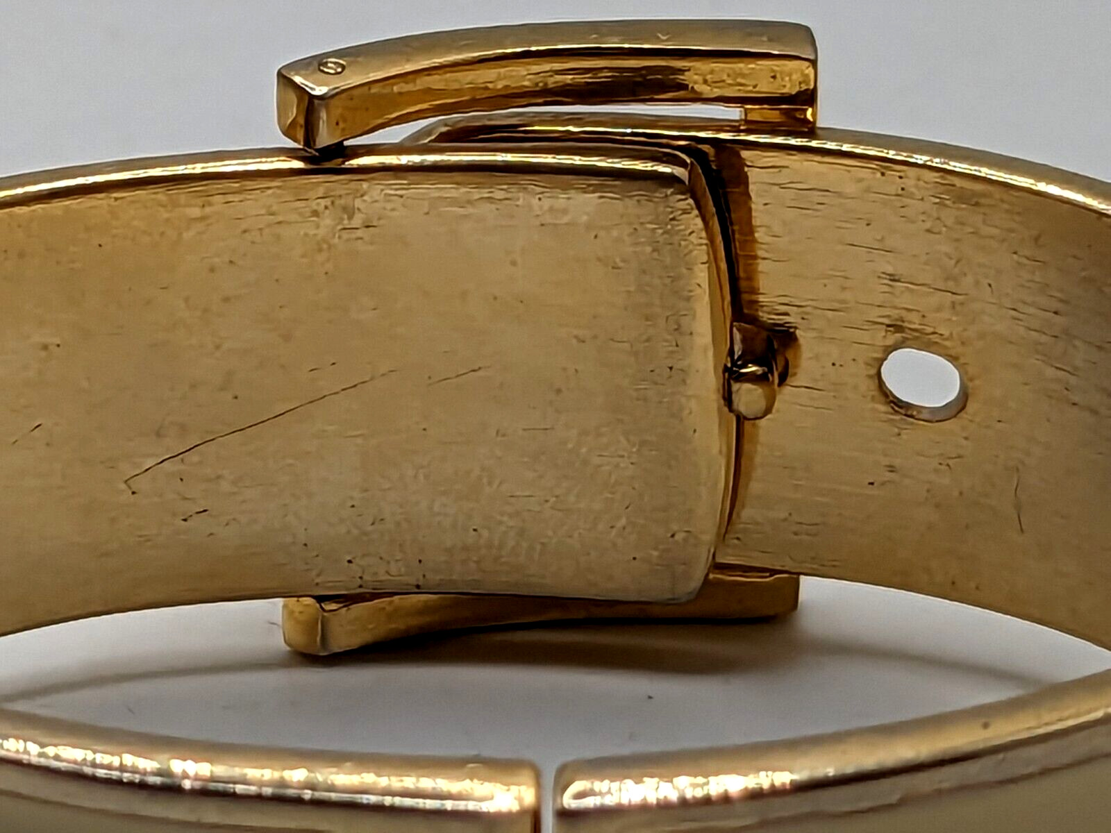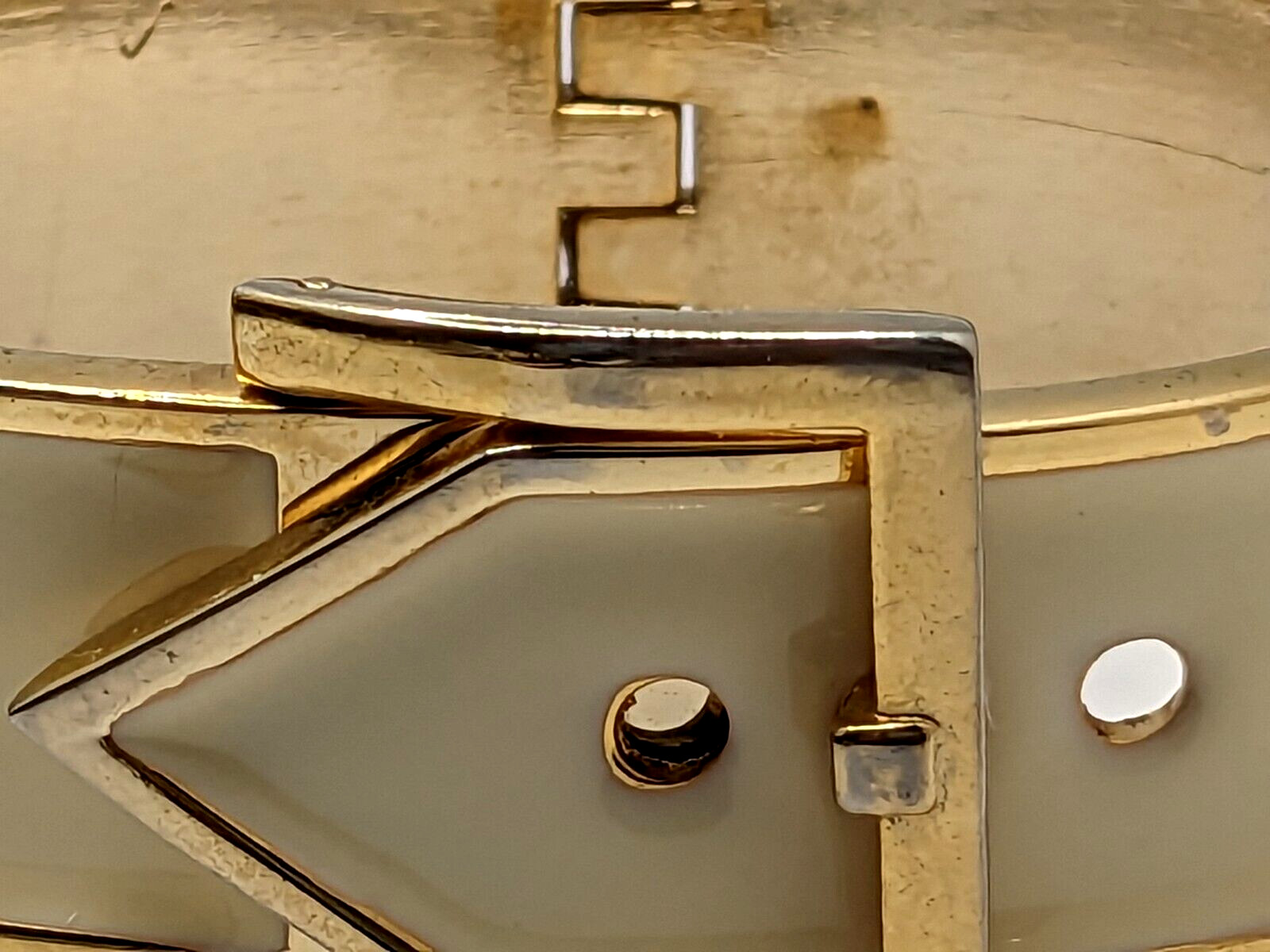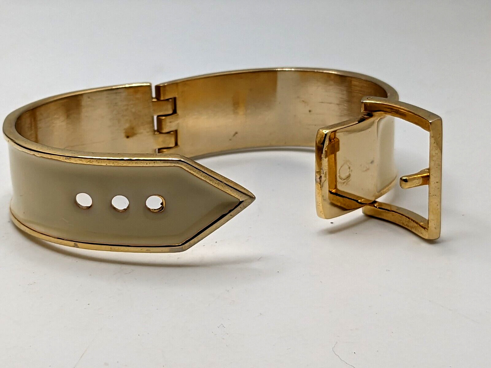 как выглядит Vintage gold tone Hinged 0.75" wide off white Enamel Bracelet fashion фото