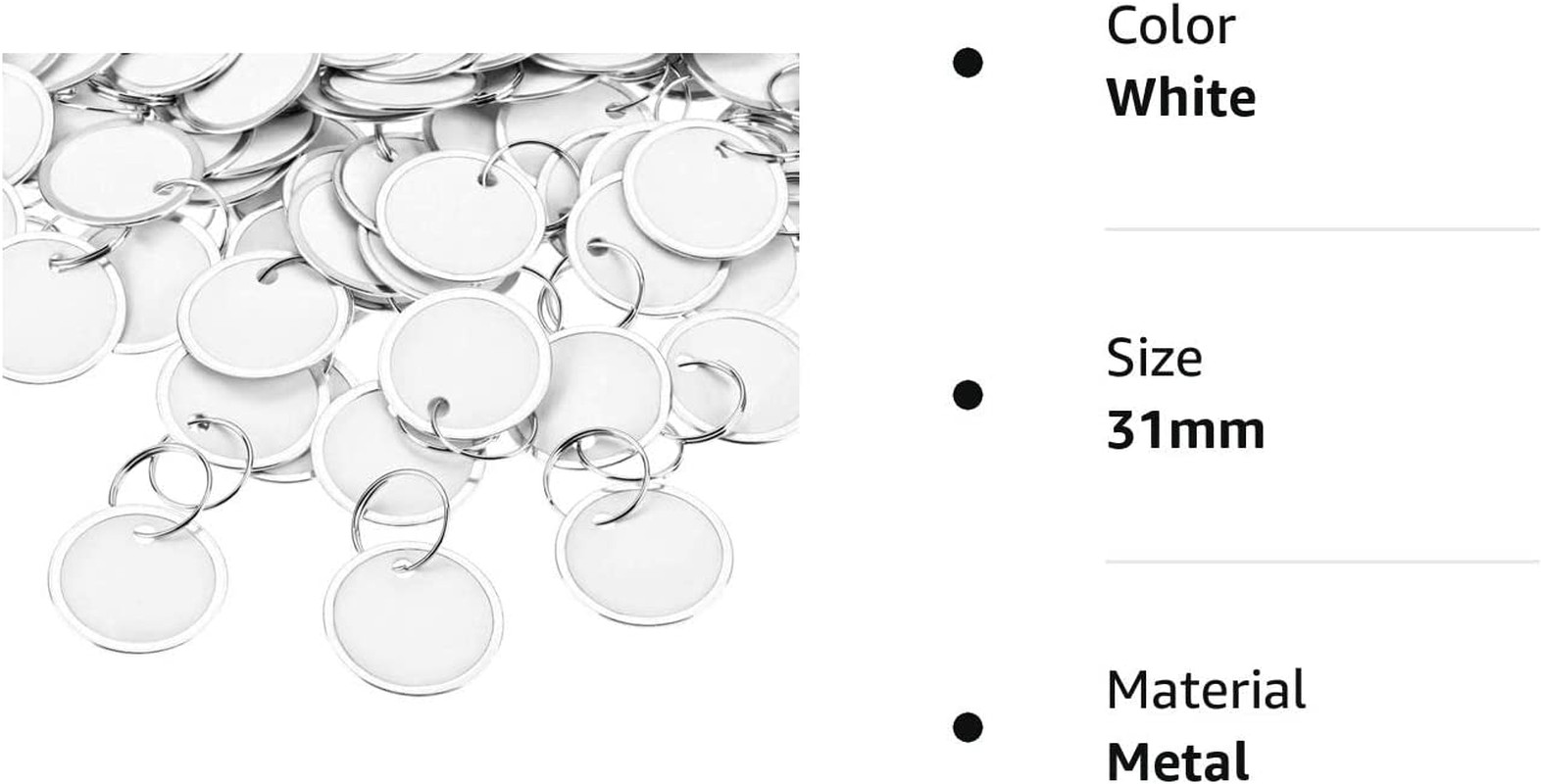 100 Pcs Metal Rim Key Tags,Round Paper Tags with Split Rings,White Small Coded K