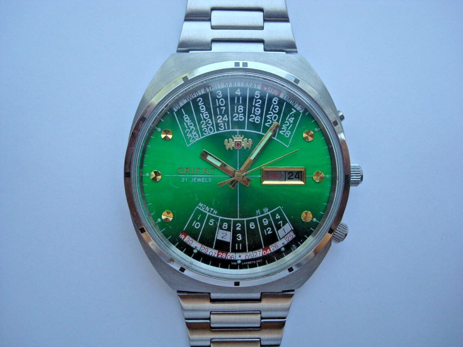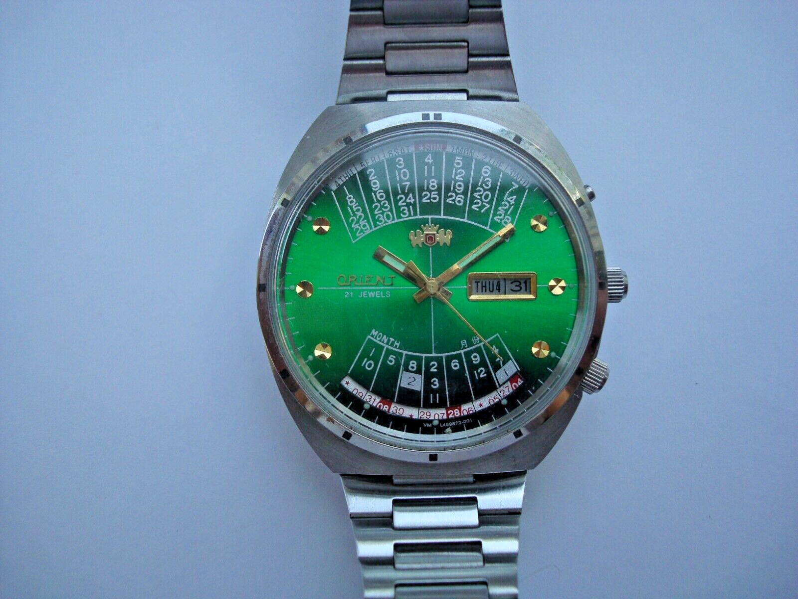 Orient Perpetual Calendar Mens Automatic Watch Green Dial 21j. DD QS Orient Band