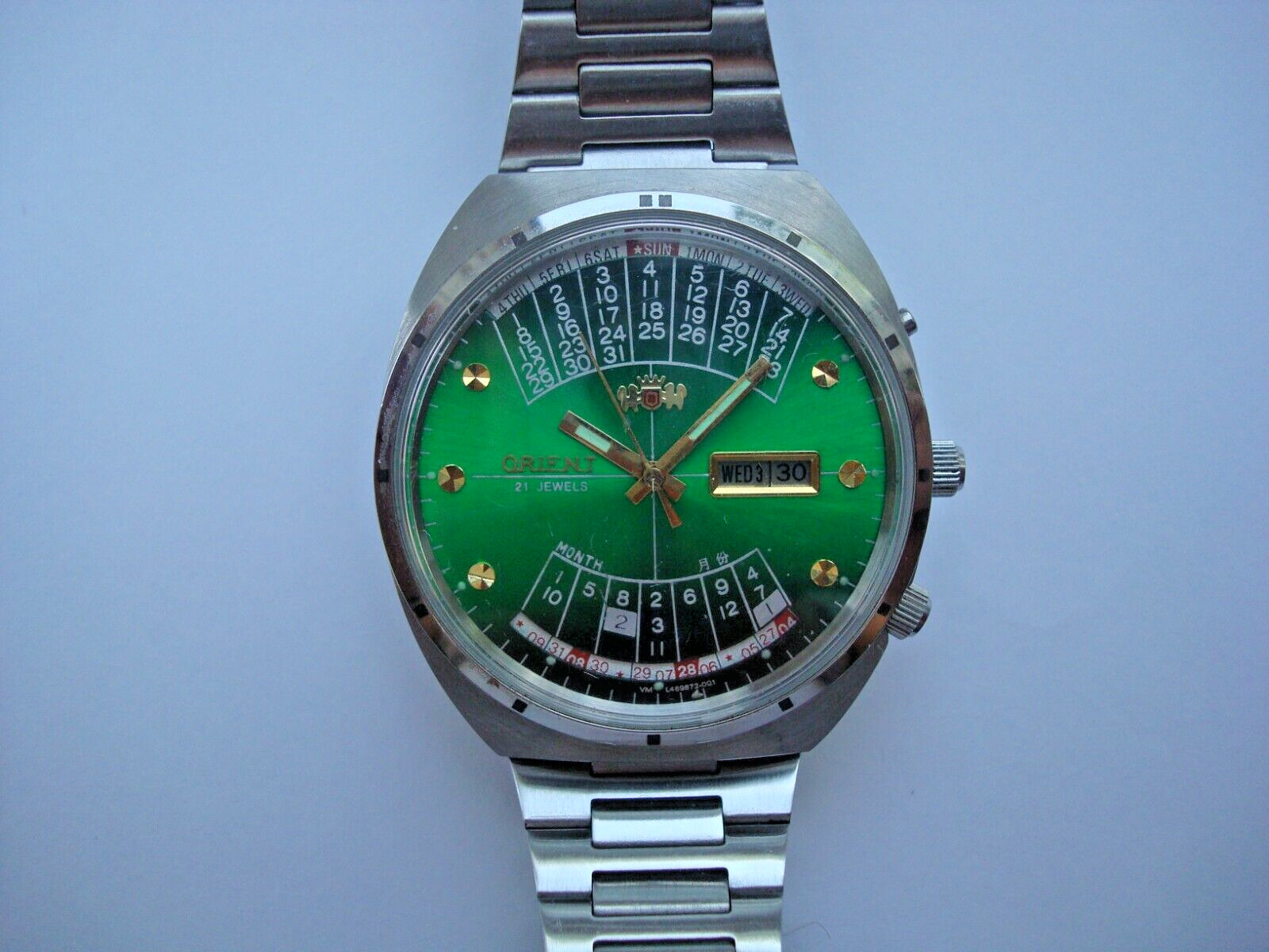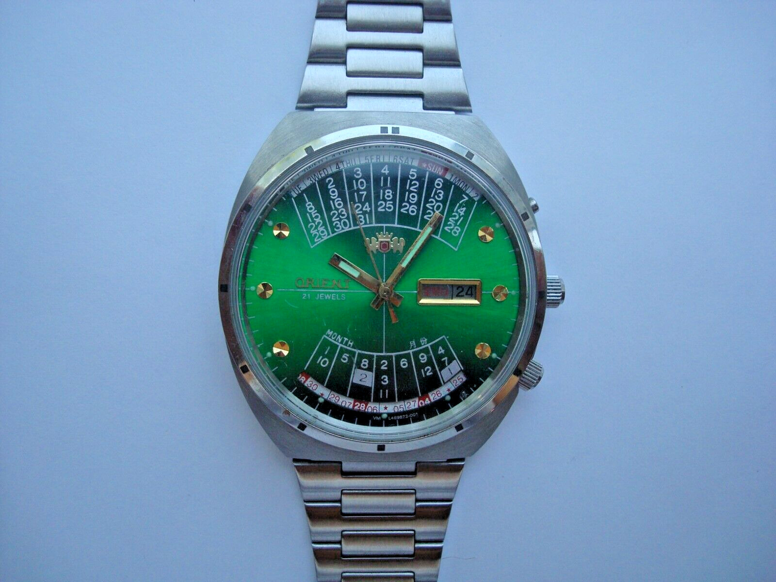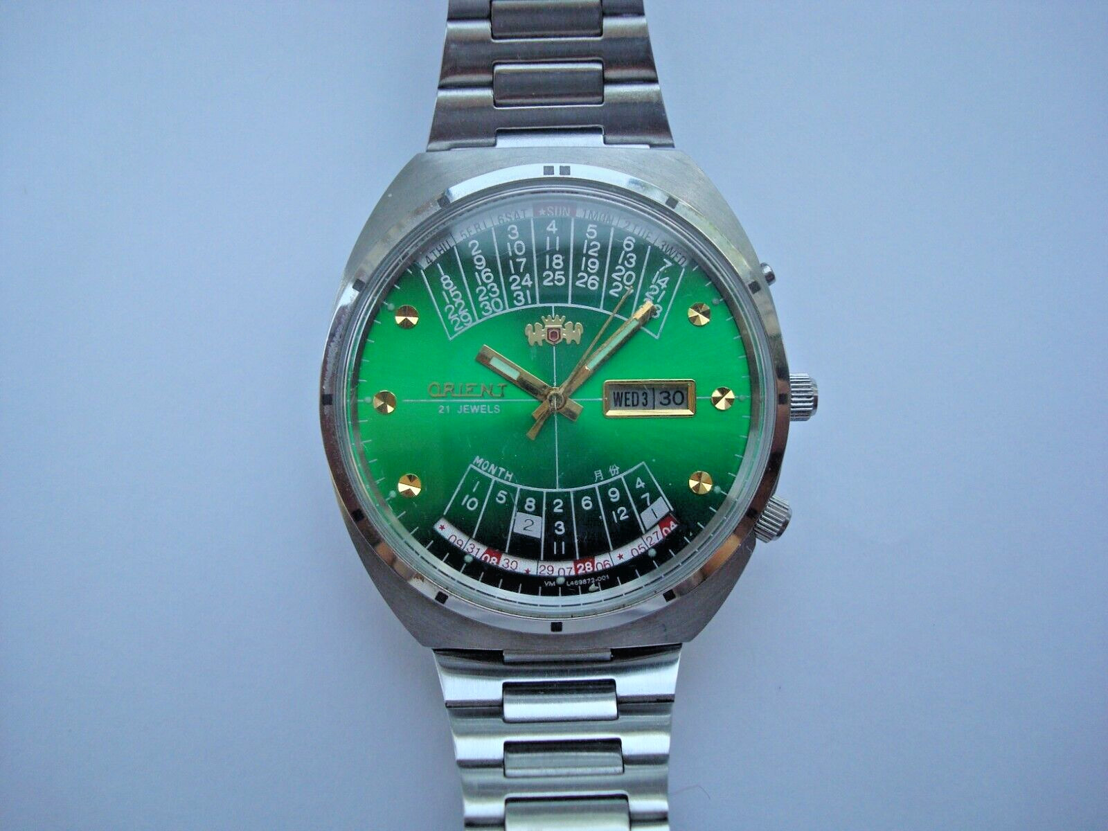 как выглядит Orient Perpetual Calendar Mens Automatic Watch Green Dial 21j. DD QS Orient Band фото
