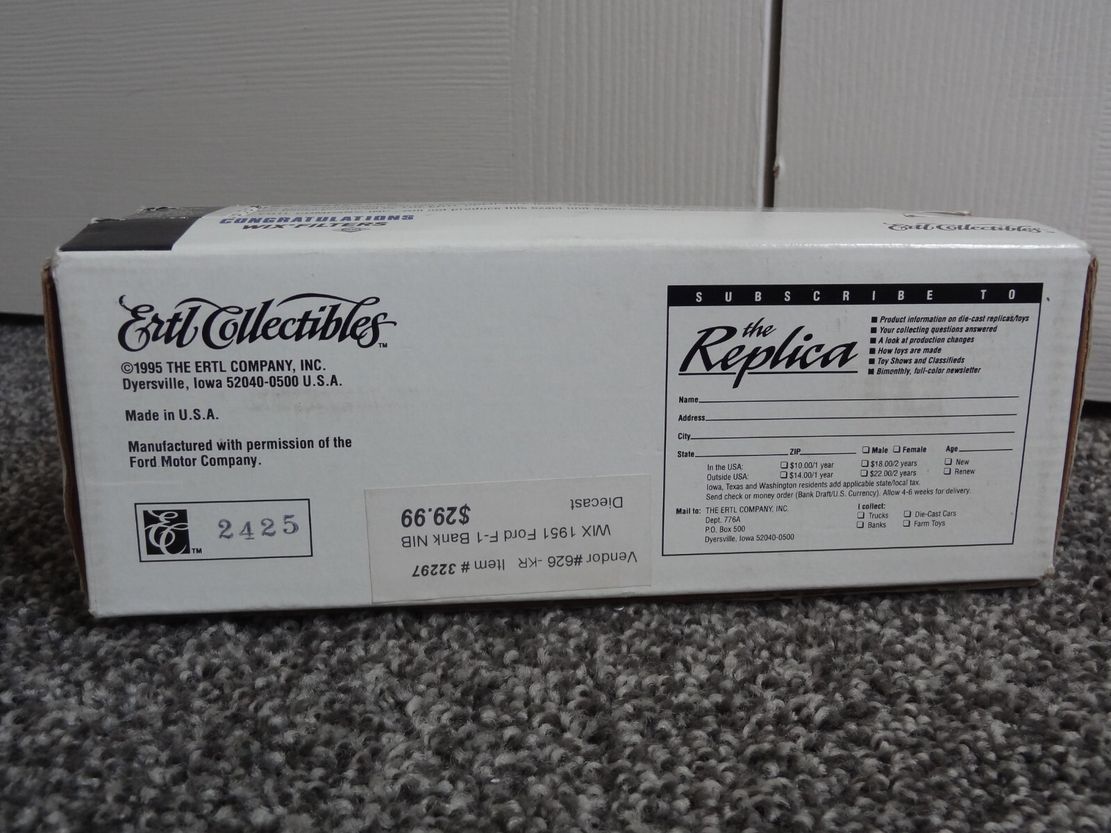 '51 Ford F-1 BANK Item 32297 Wix Filters ERTL 1995 Limited Edition 1:24 Blue.