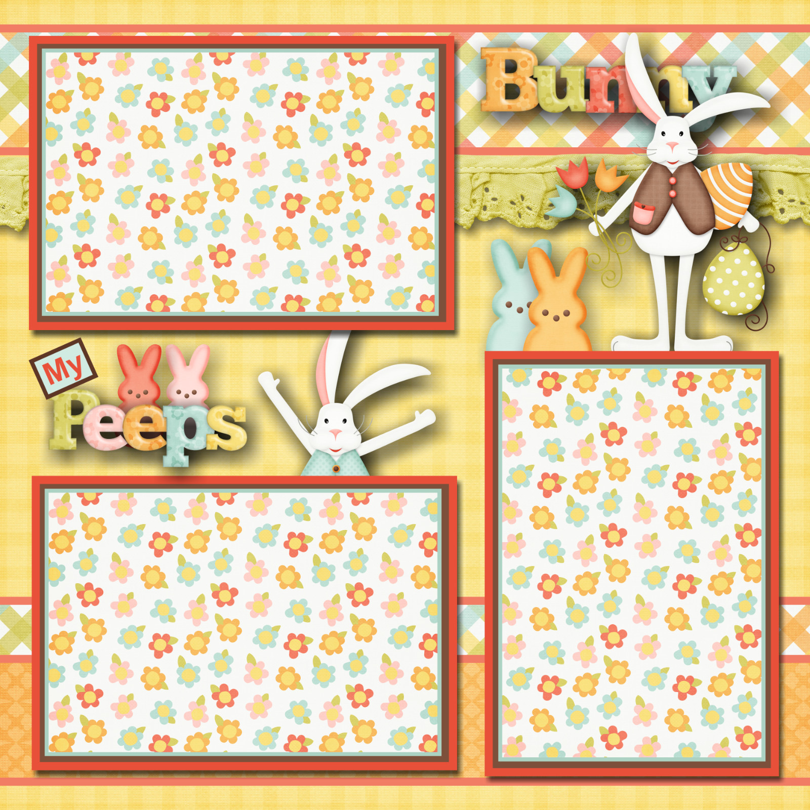 EASTER BUNNY'S Premade Scrapbook Pages paper printed layout DBDS