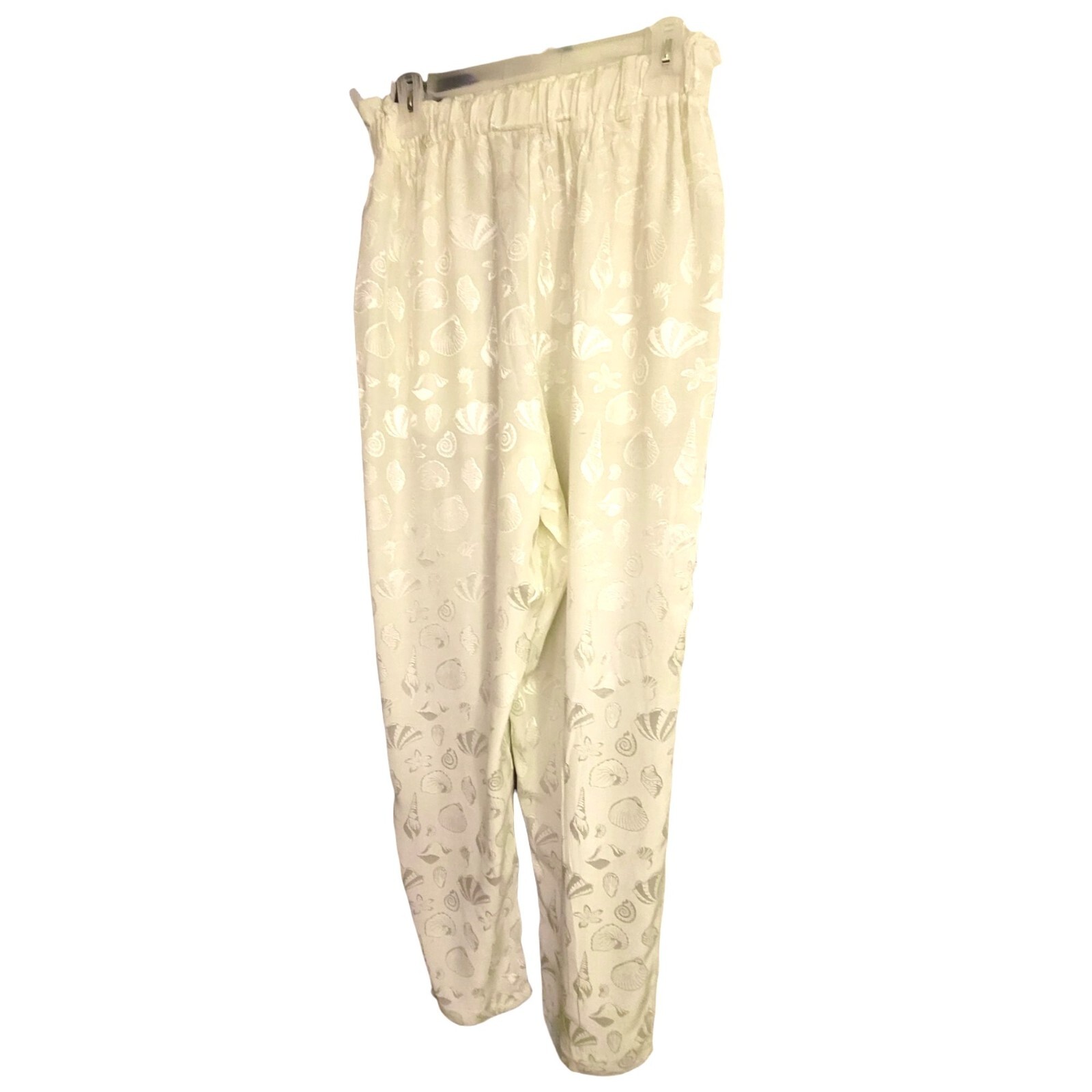 Vintage Wrapper Pants Ivory Seashell 1980's Rayon Acetate High Waist Large DH620
