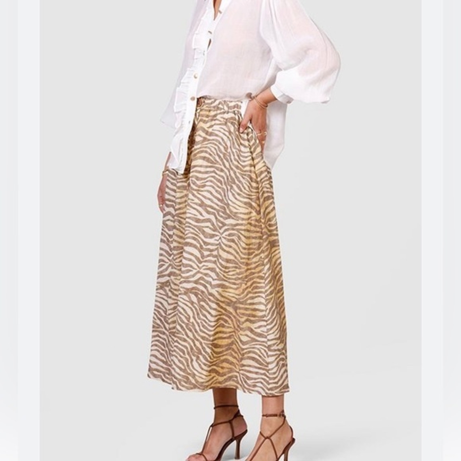 H M Patterned Tan Zebra Casual Lightweight Pockets Midi Skirt 8