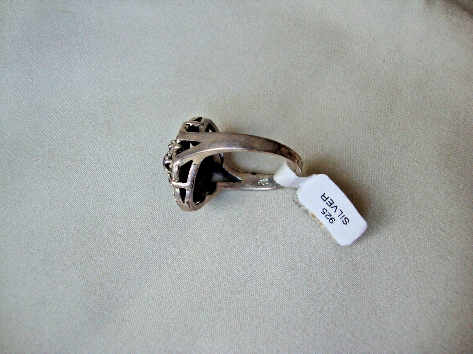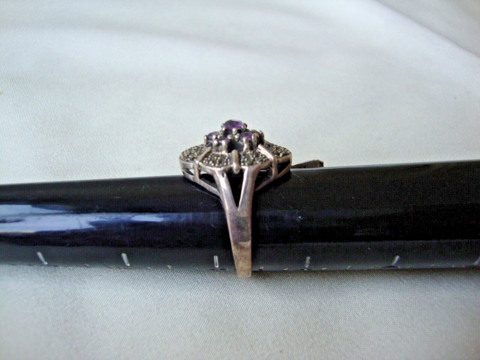 как выглядит VINTAGE AMETHYST CLUSTER W/ MARCASITE ACCENTS COCKTAIL RING SILVER 925 SZ 8 фото