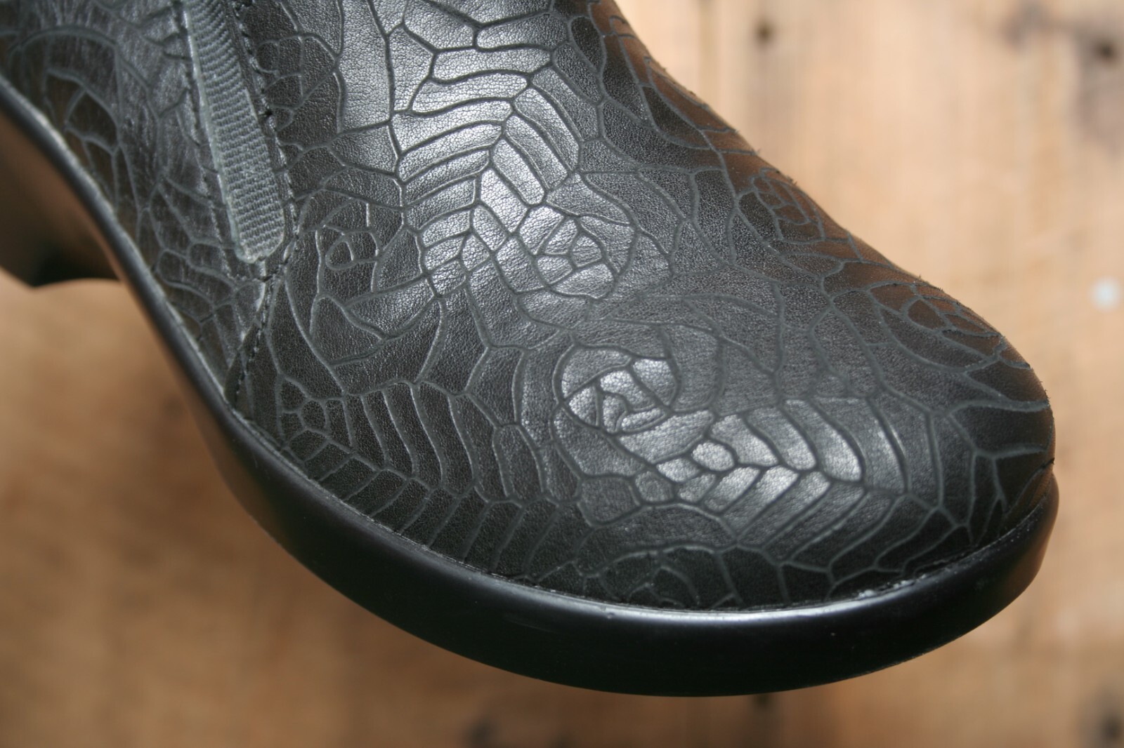 как выглядит ALEGRIA Eryn Black Floral Embossed Leather Clogs EUR 38  US 8 фото