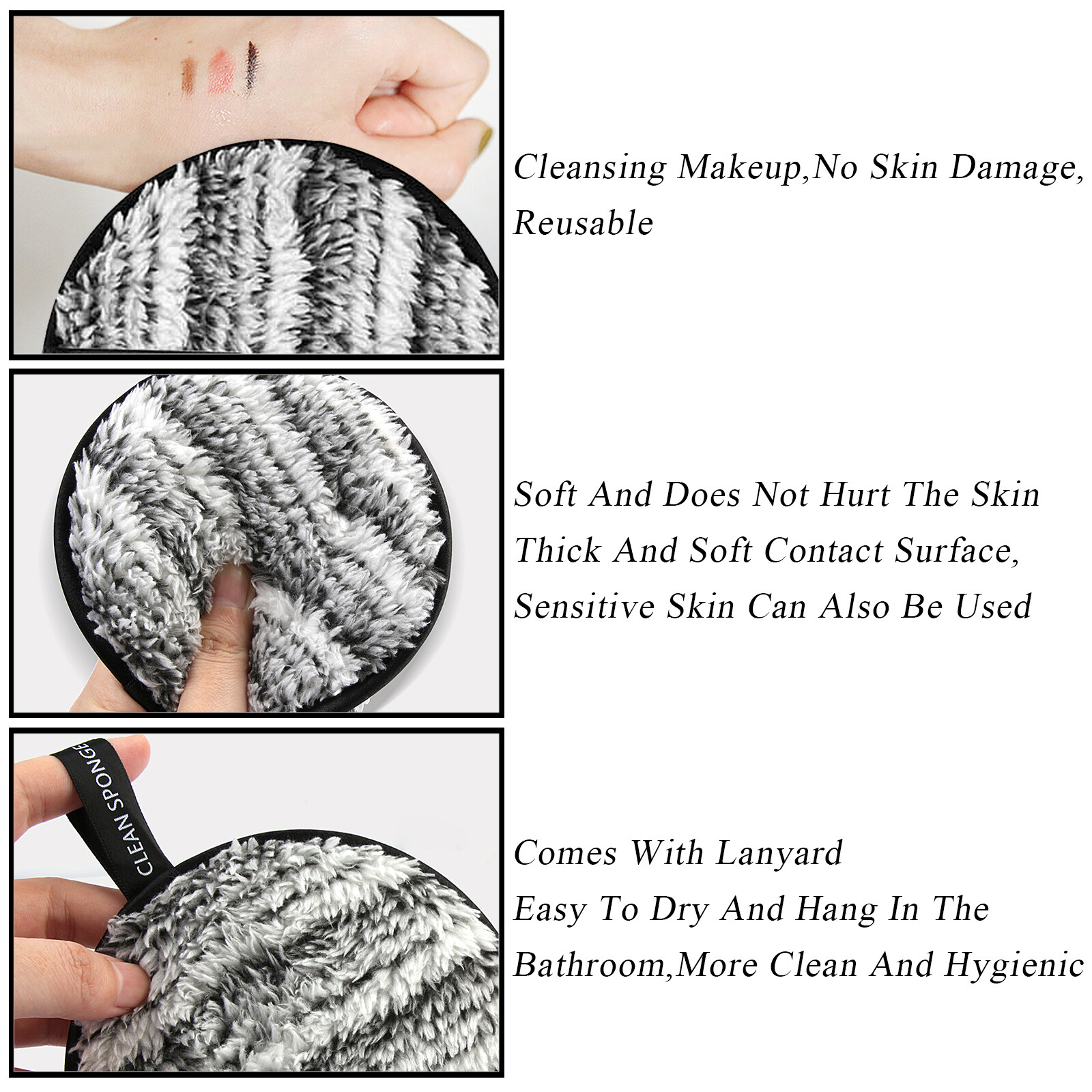 3pcs Reusable Makeup Remover Pads Facial Heavy Makeup Masks Cleansing Face Pads