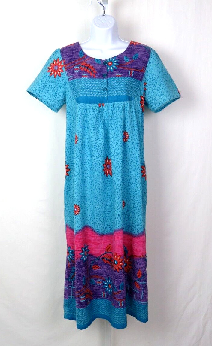 как выглядит VTG 1970s 80s LARGE COTTON FLORAL HIPPY DRESS DAFFODIL ROPE BELT MADE IN INDIA фото