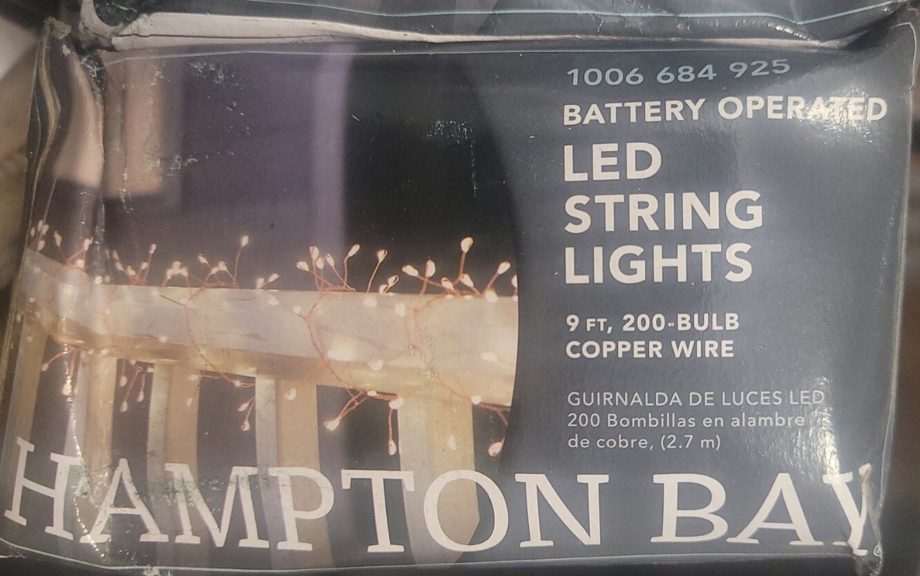 как выглядит NEW HAMPTON BAY Outdoor/Indoor 9 ft. Battery Operated 200 Micro Bulbs LED фото