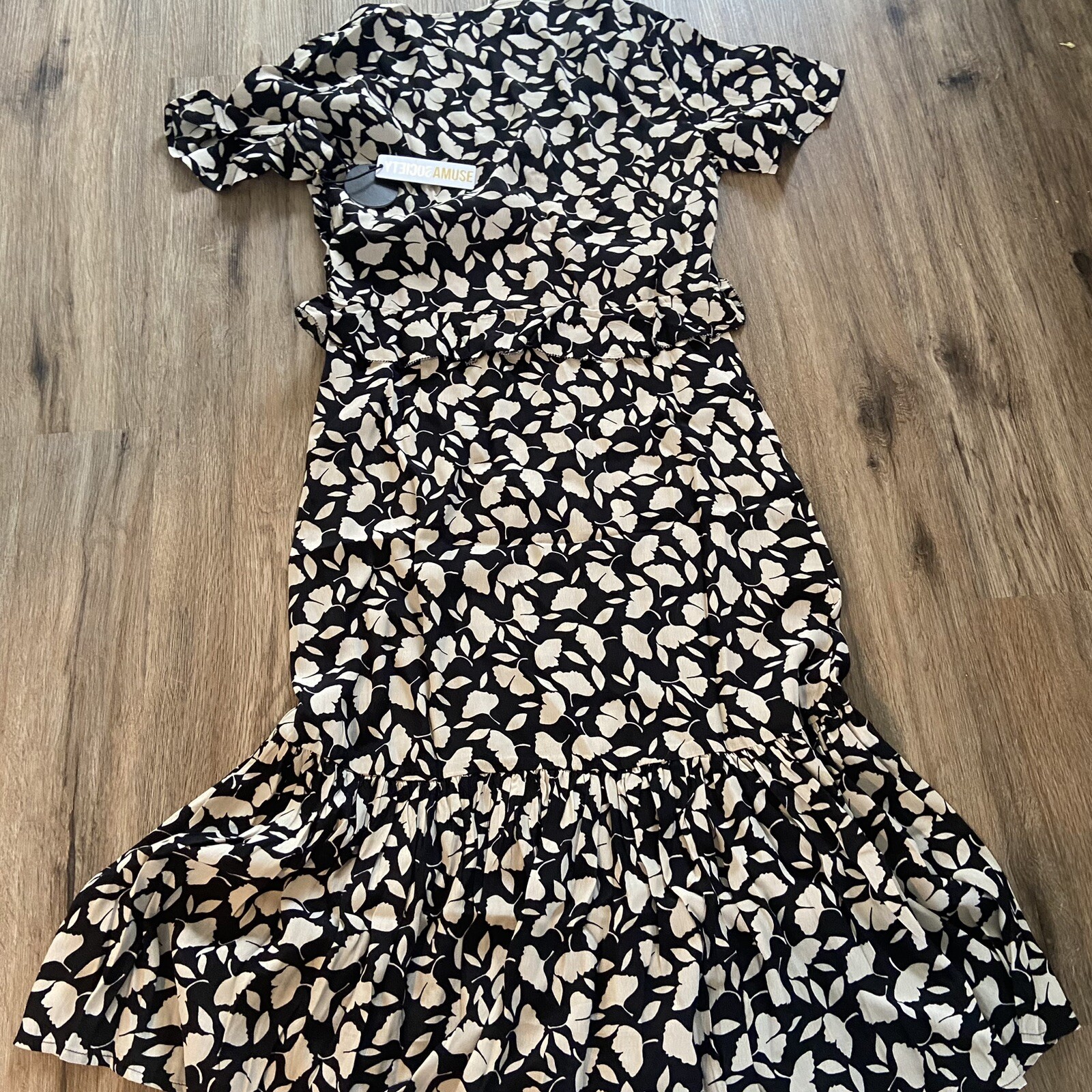 как выглядит NWT Amuse Society Scarlet Short Sleeve Woven Floral Midi Dress Medium фото