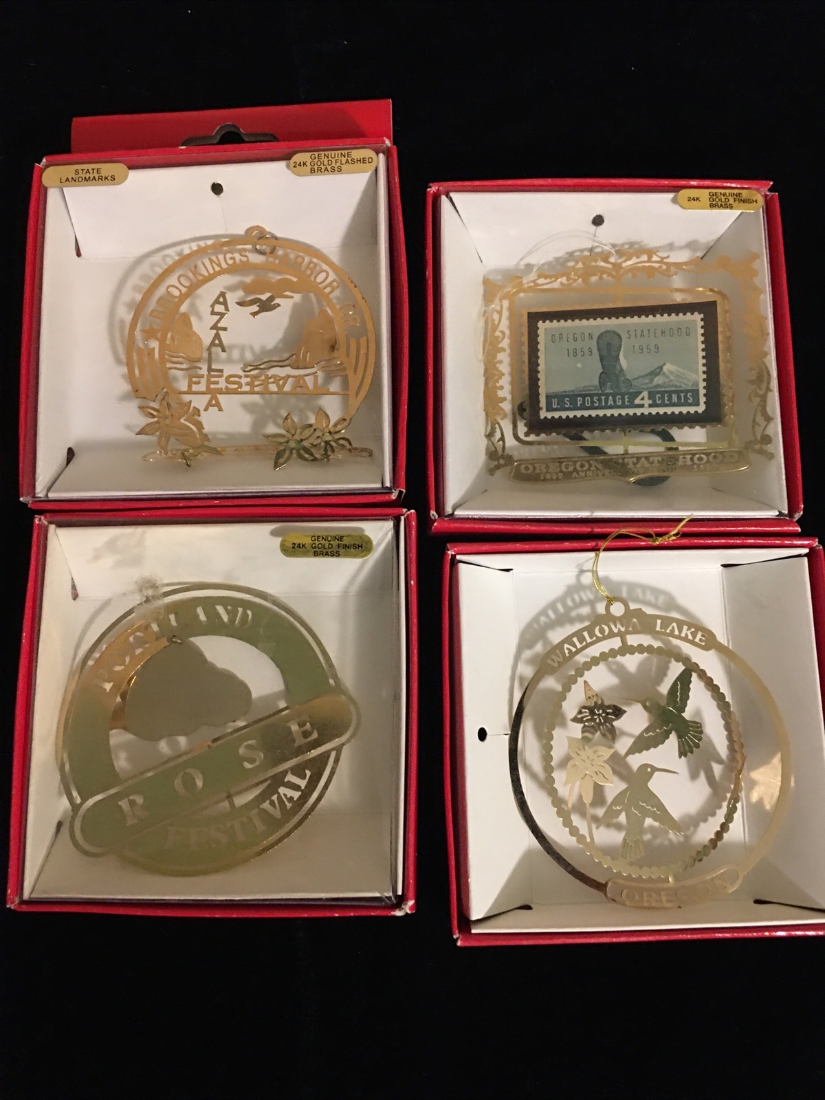 Oregons Holiday Christmas Brass Ornaments Souvenir Lot Of 4