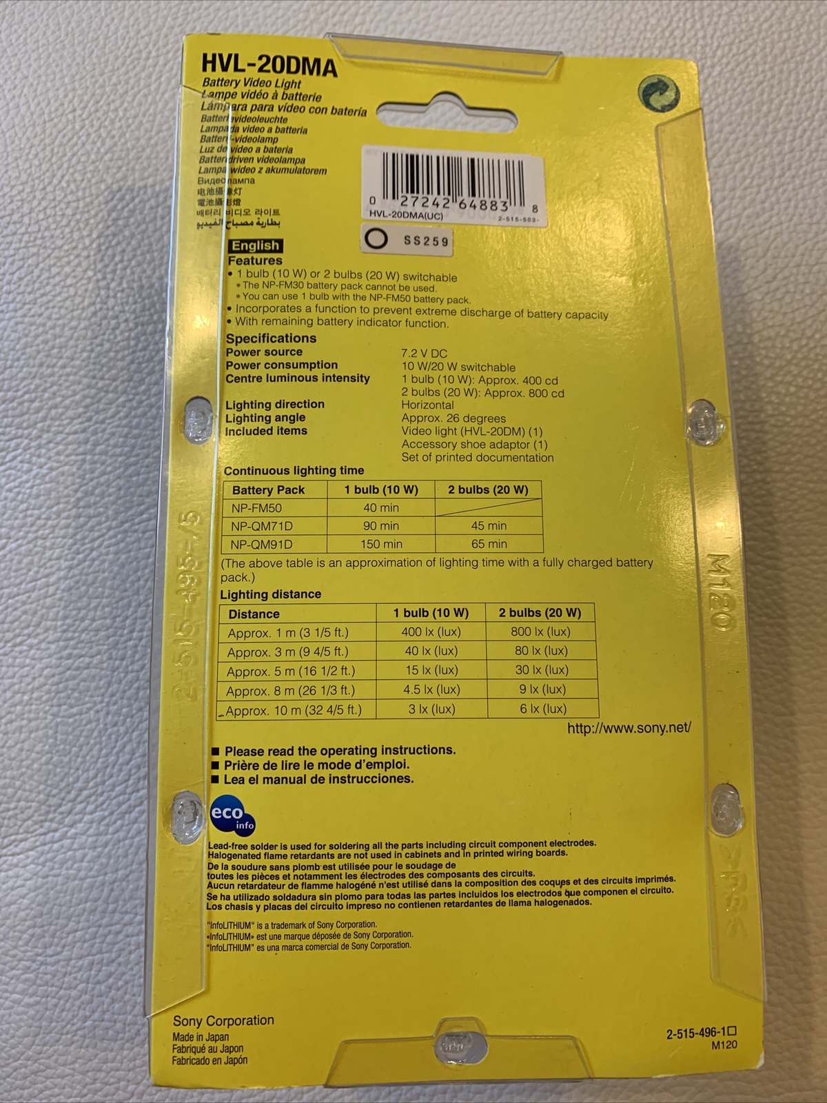 Sony HVL-20DMA Video Light 10W or 20W Switchable NIP