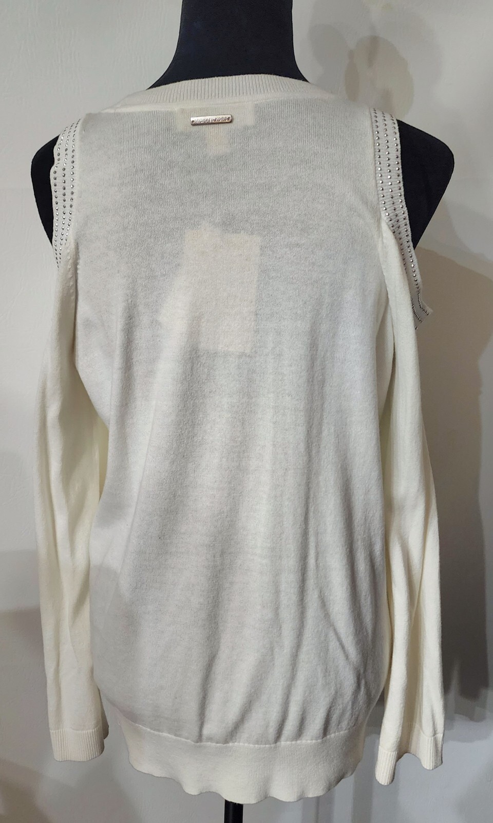 NWT Womens MICHAEL KORS White Cold Shoulder Crew Neck Sweater Large MSRP 98.00