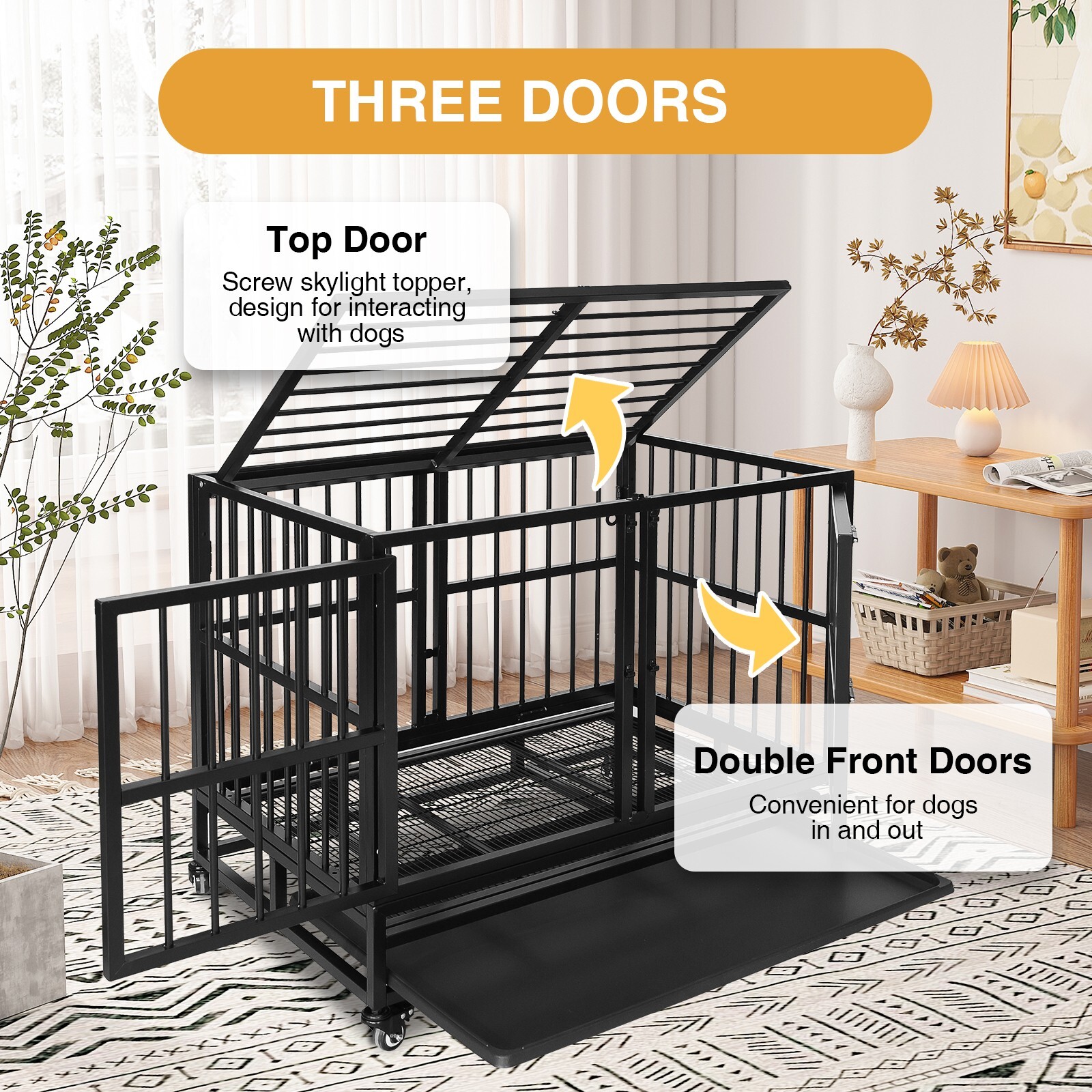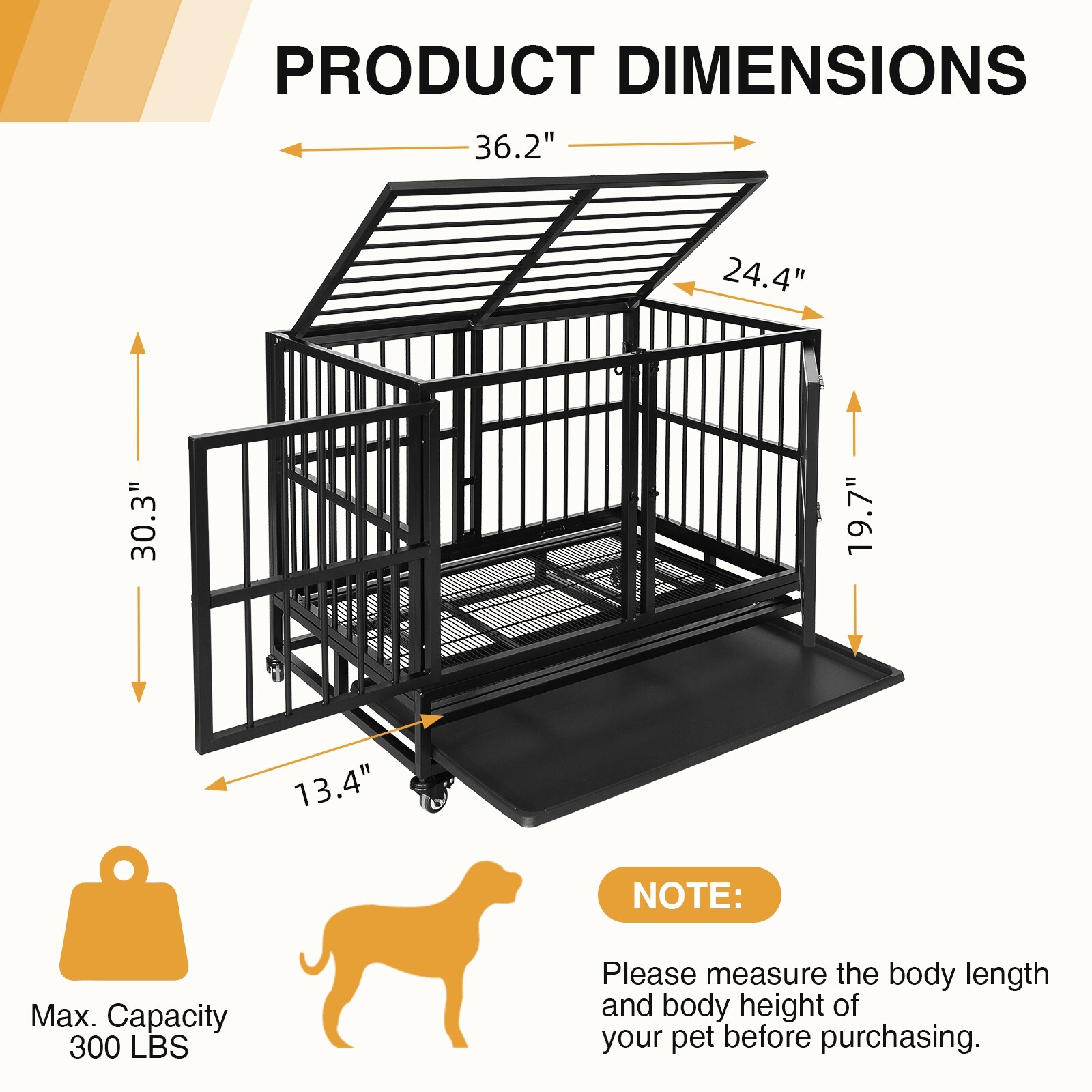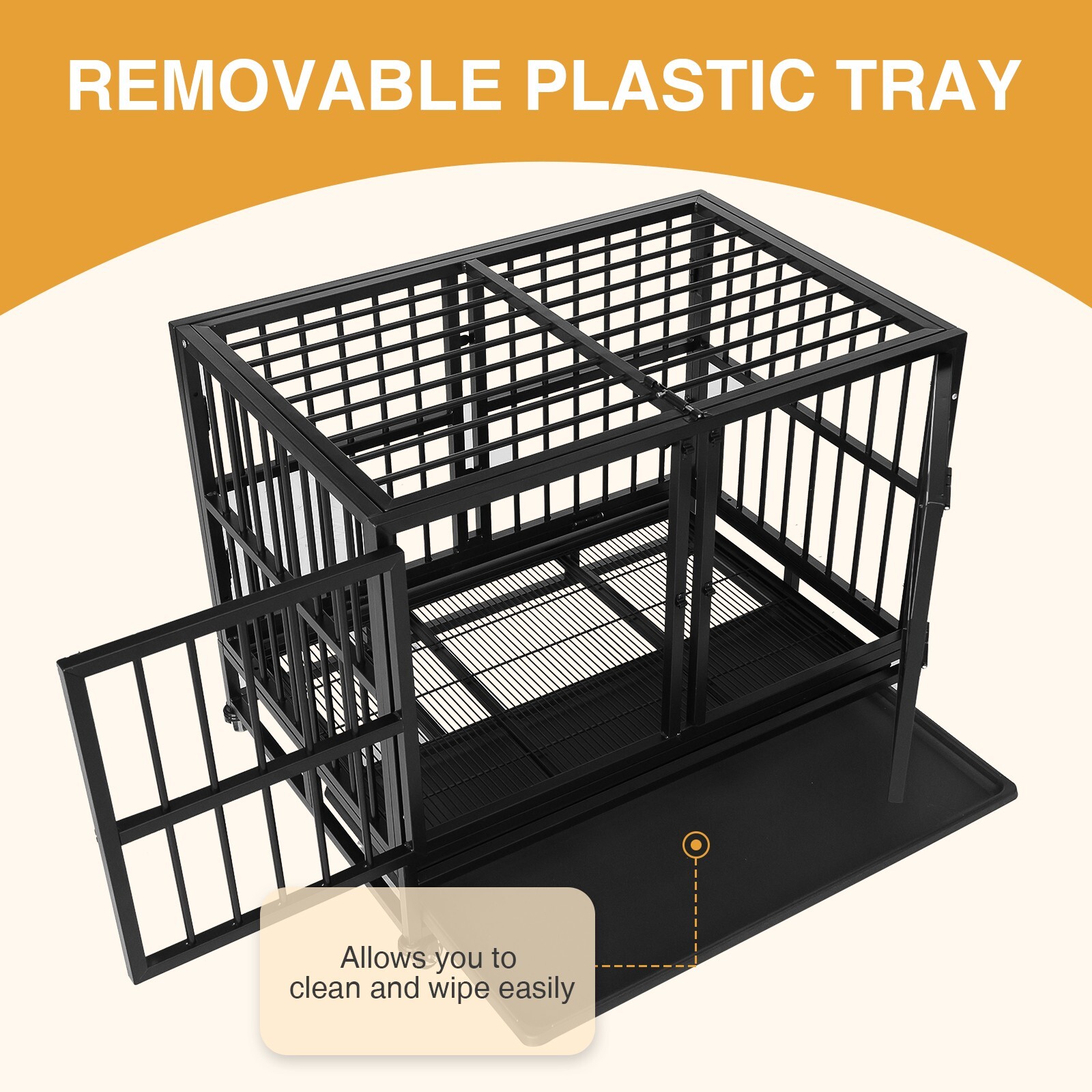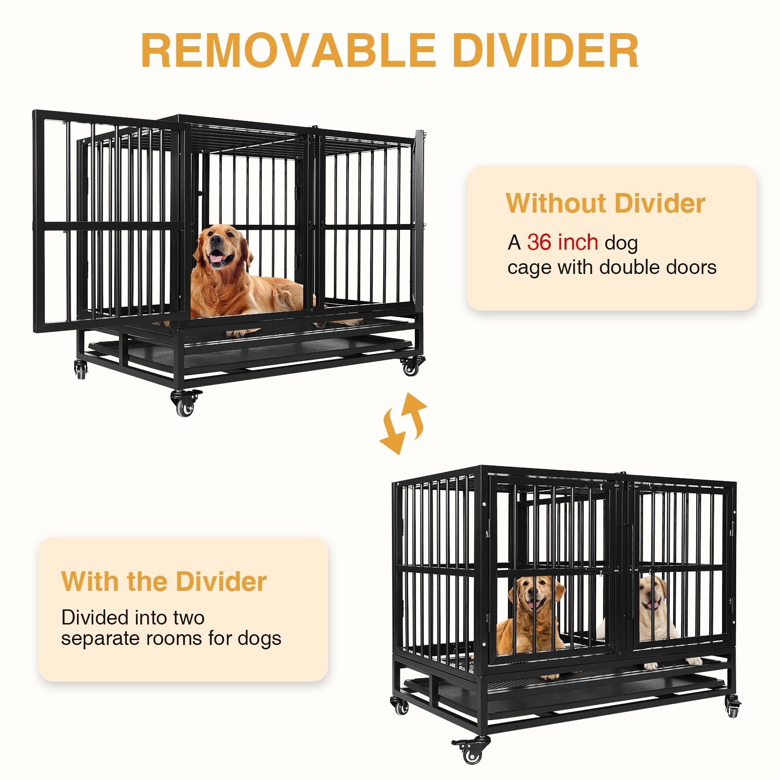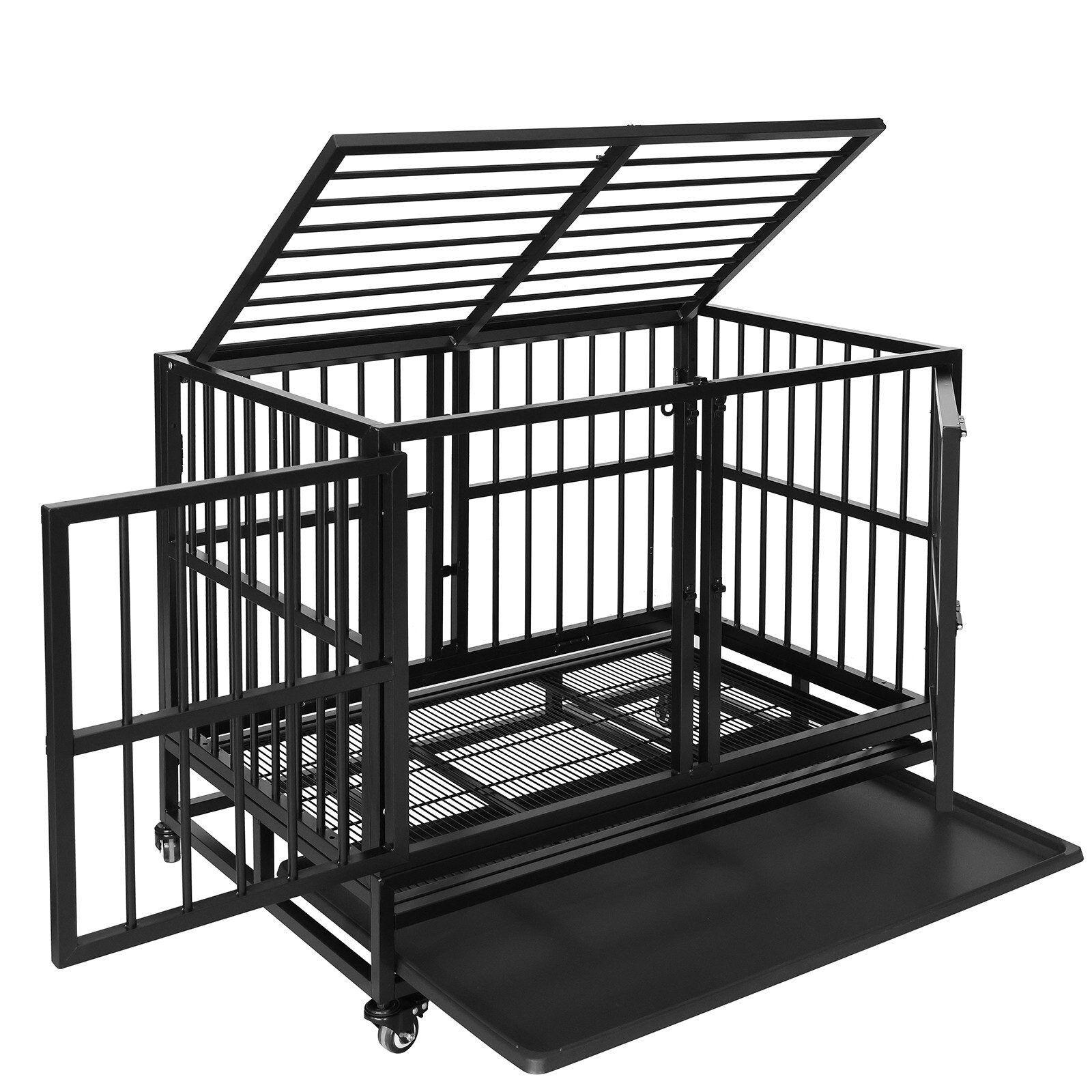 36 Black Double Front Door Dog Cage Heavy Duty Large Pet Kennel w/Wheels Tray