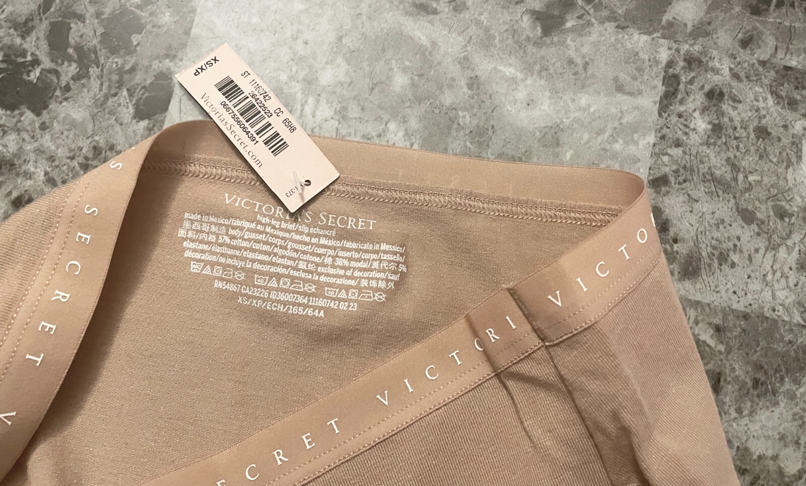 NWT VICTORIA'S SECRET XS BEIGE NUDE WHITE LOGO WAISTBAND HIGH LEG BRIEF PANTIES