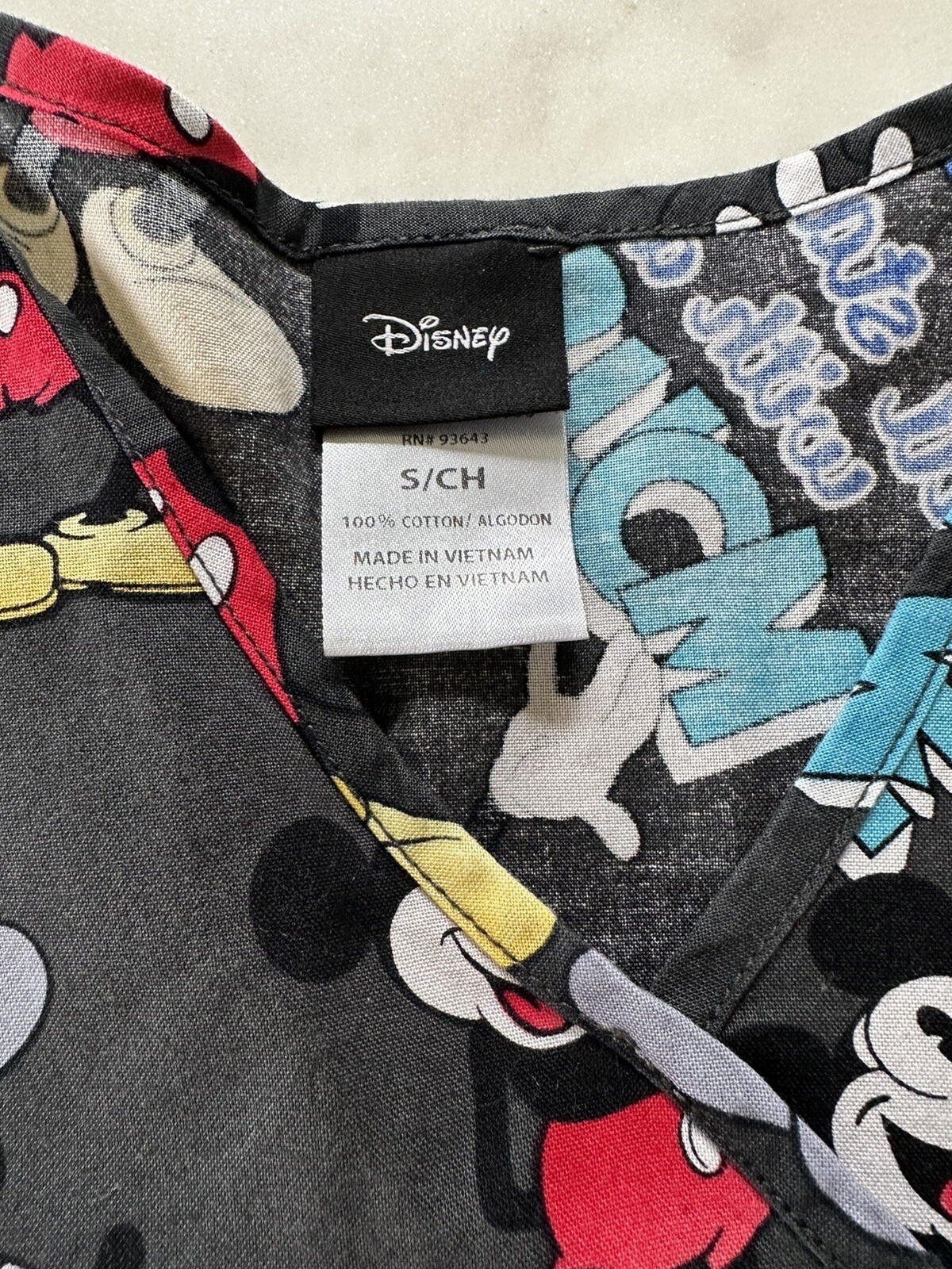 DISNEY Mickey Mouse Uniform Medical Scrub Top Size Small