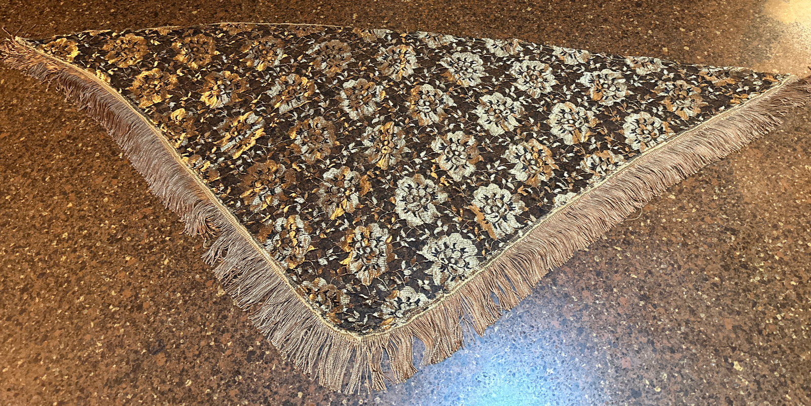 как выглядит Gold and Black lace shawl with fringe Vintage Japanese scarf Evening shimmer MB фото