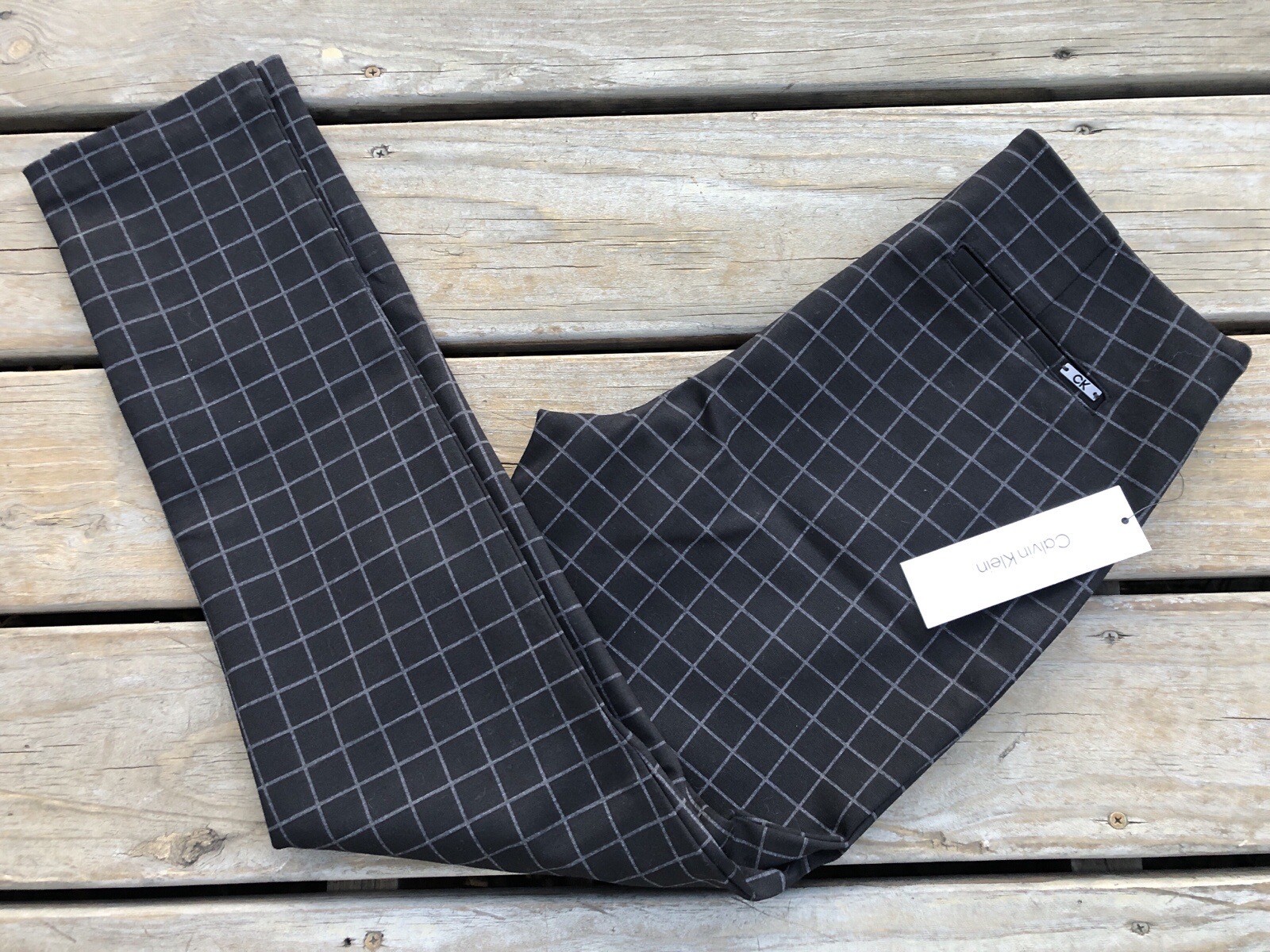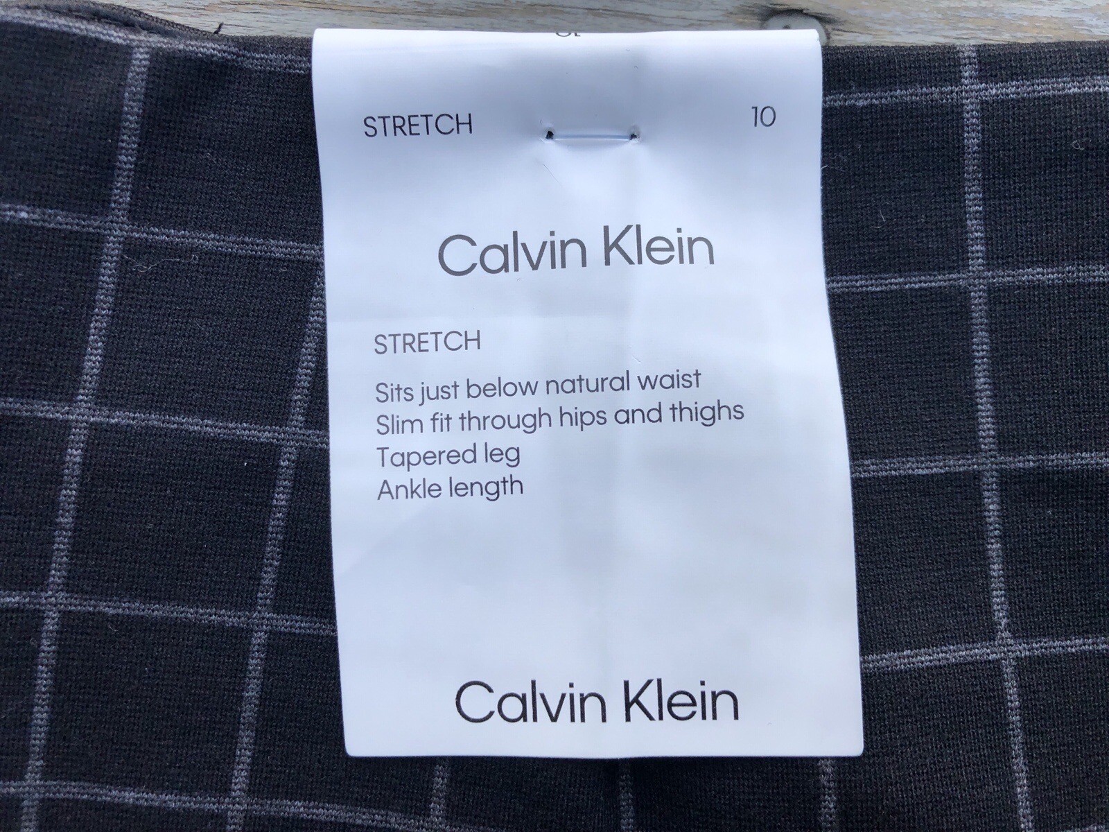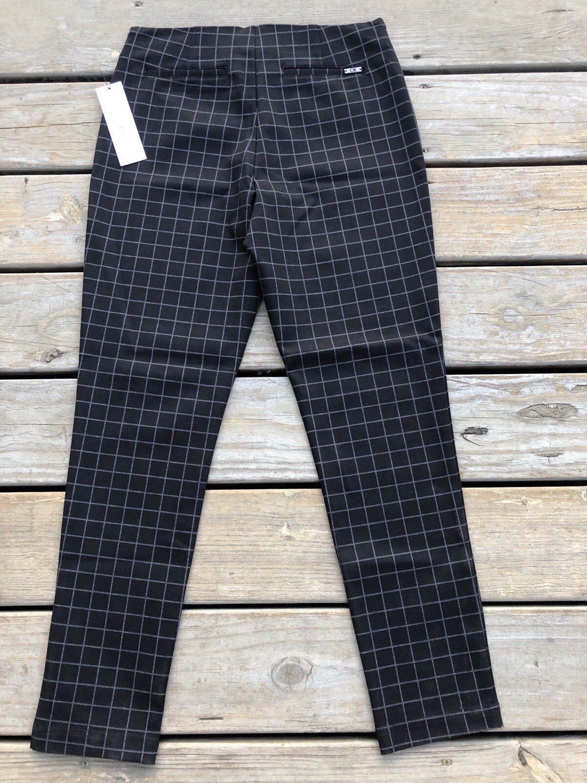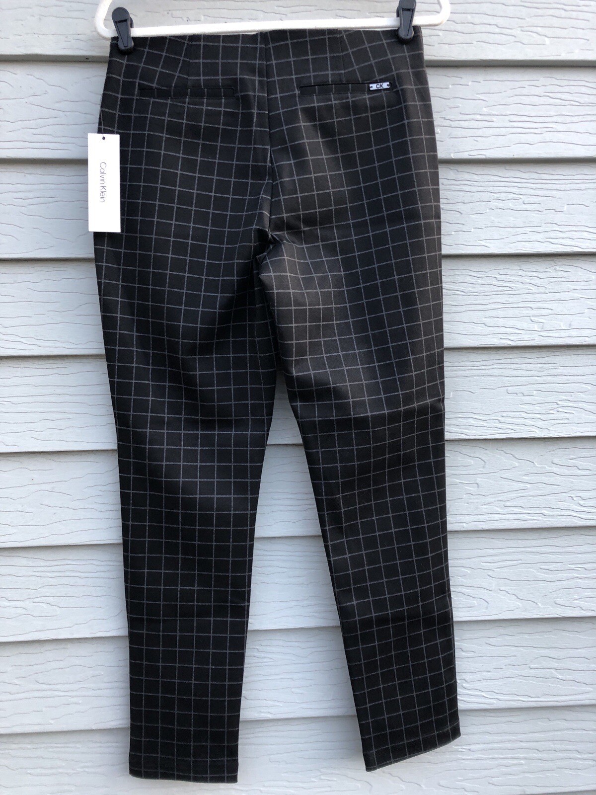 Calvin Klein NWT Womens Pull-On Stretch Pants Black/Gray Plaid Slim Fit Size 10